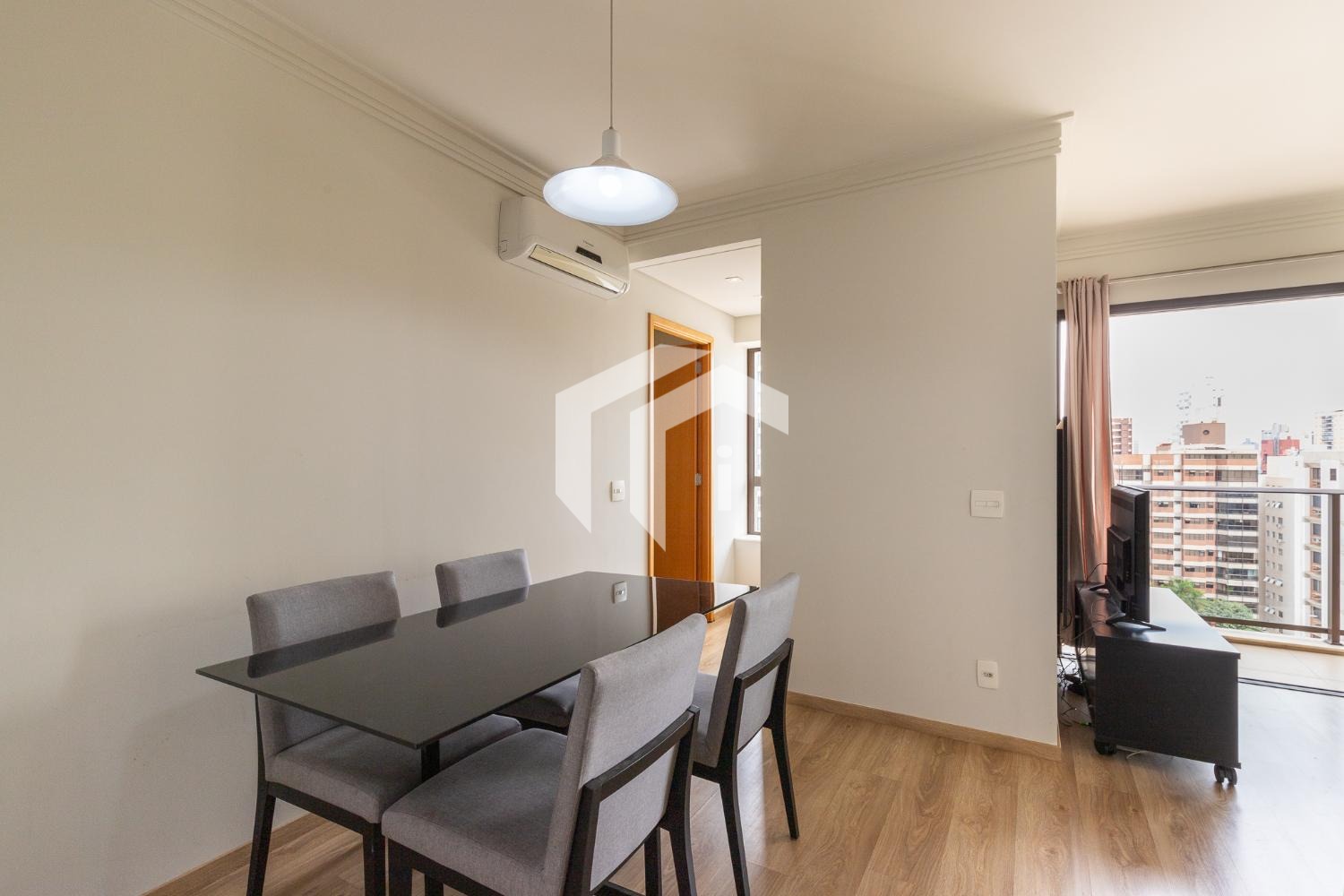 Com uma suíte cuidadosamente planejada e climatizada, além de um espaçoso living para dois ambientes que se estende até uma acolhedora varanda.
