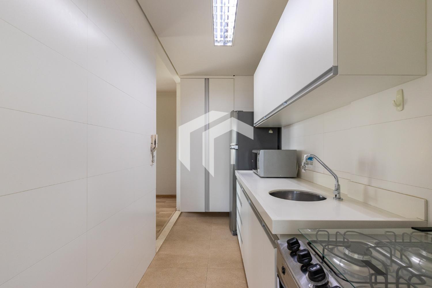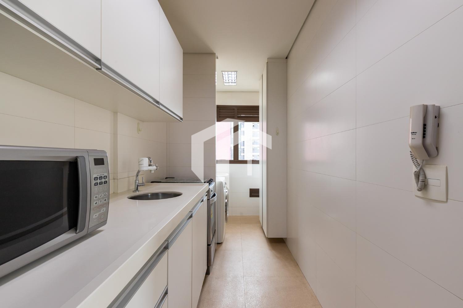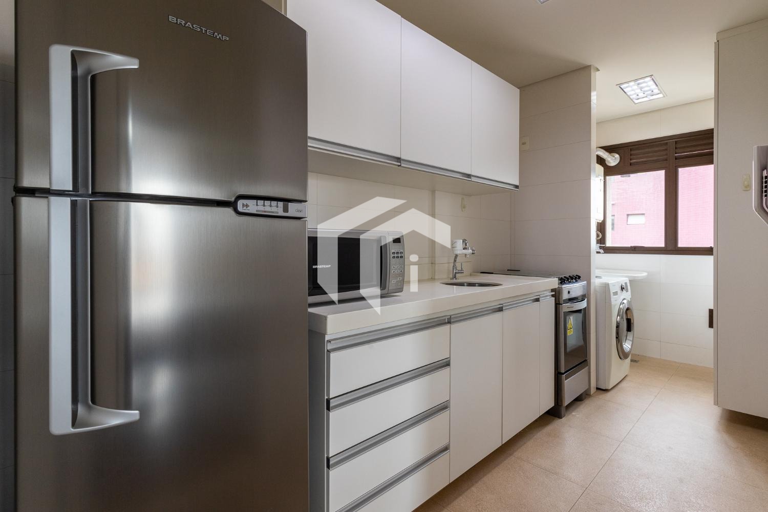 Sua cozinha totalmente planejada e uma área de serviço complementam a praticidade e o conforto deste lar.