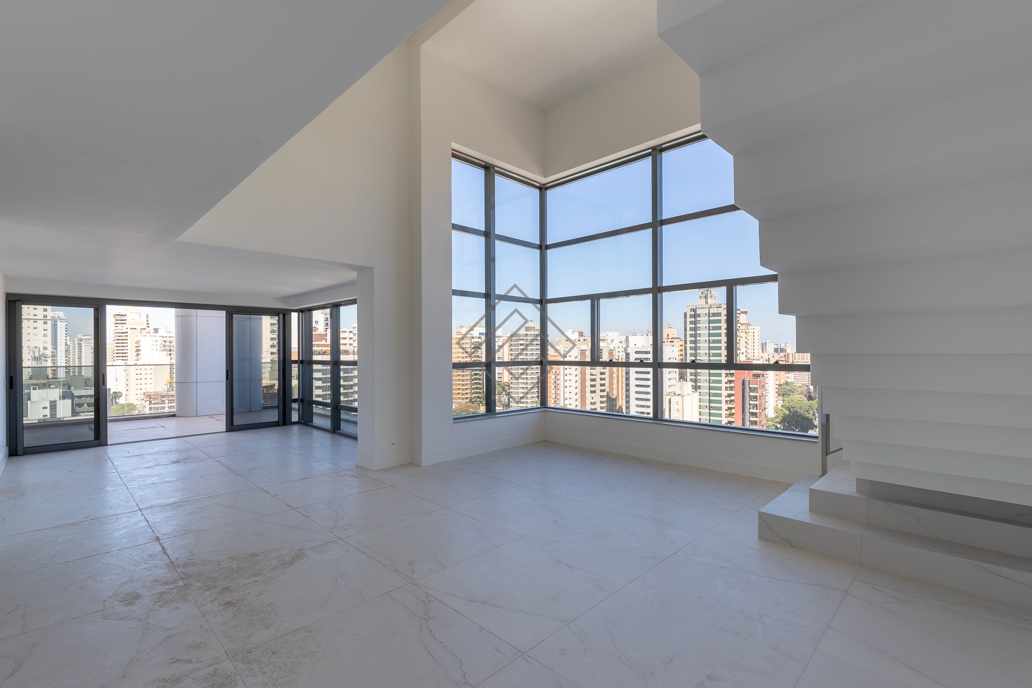 - Living para 3 ambientes, com pé direito duplo;