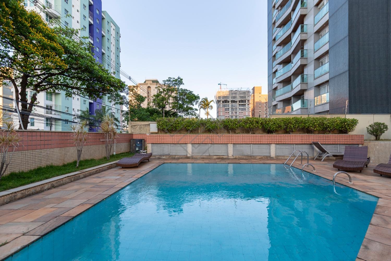 Salão de festa, piscina e academia