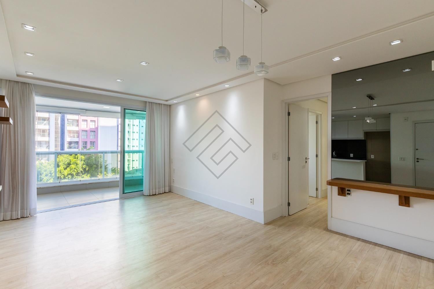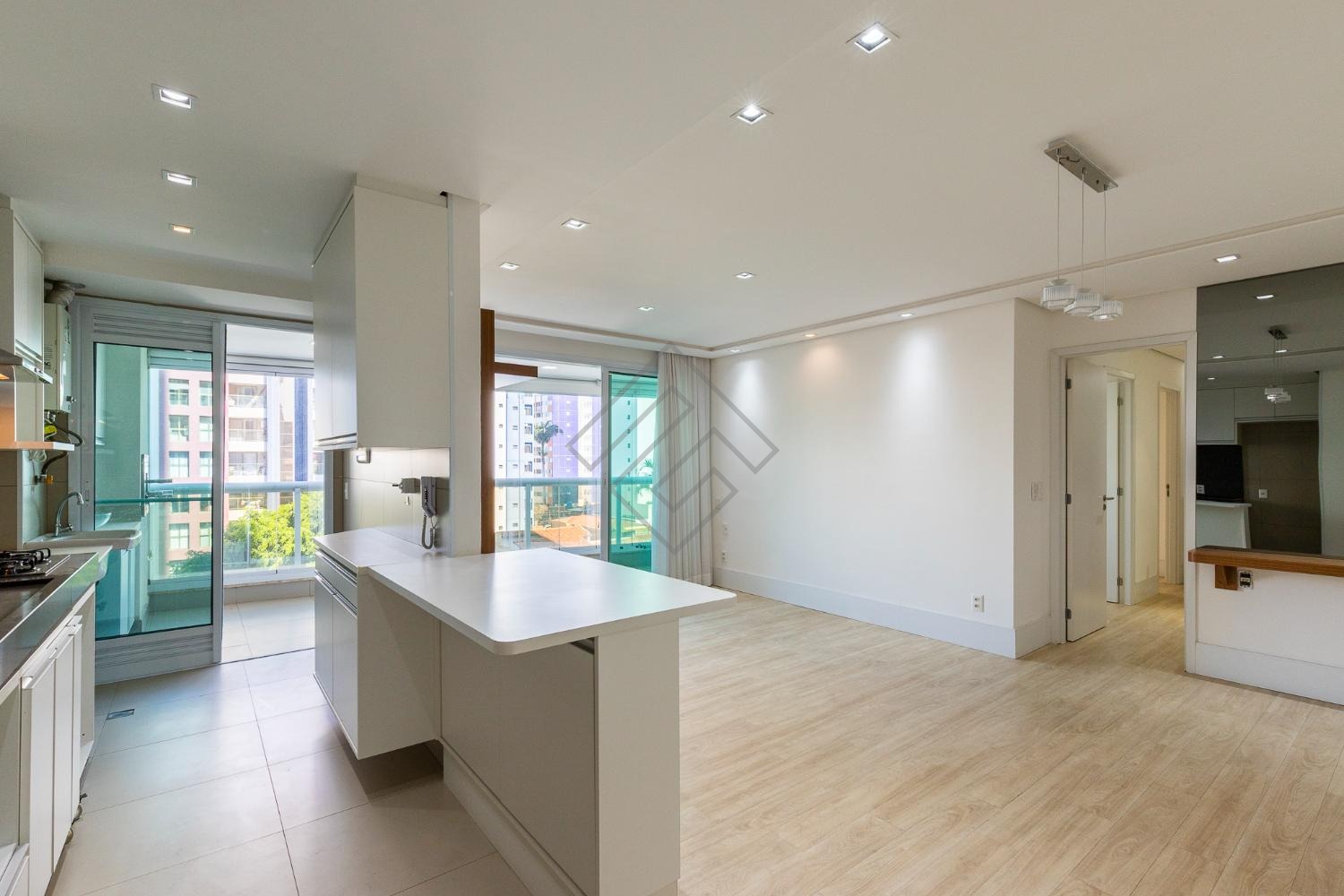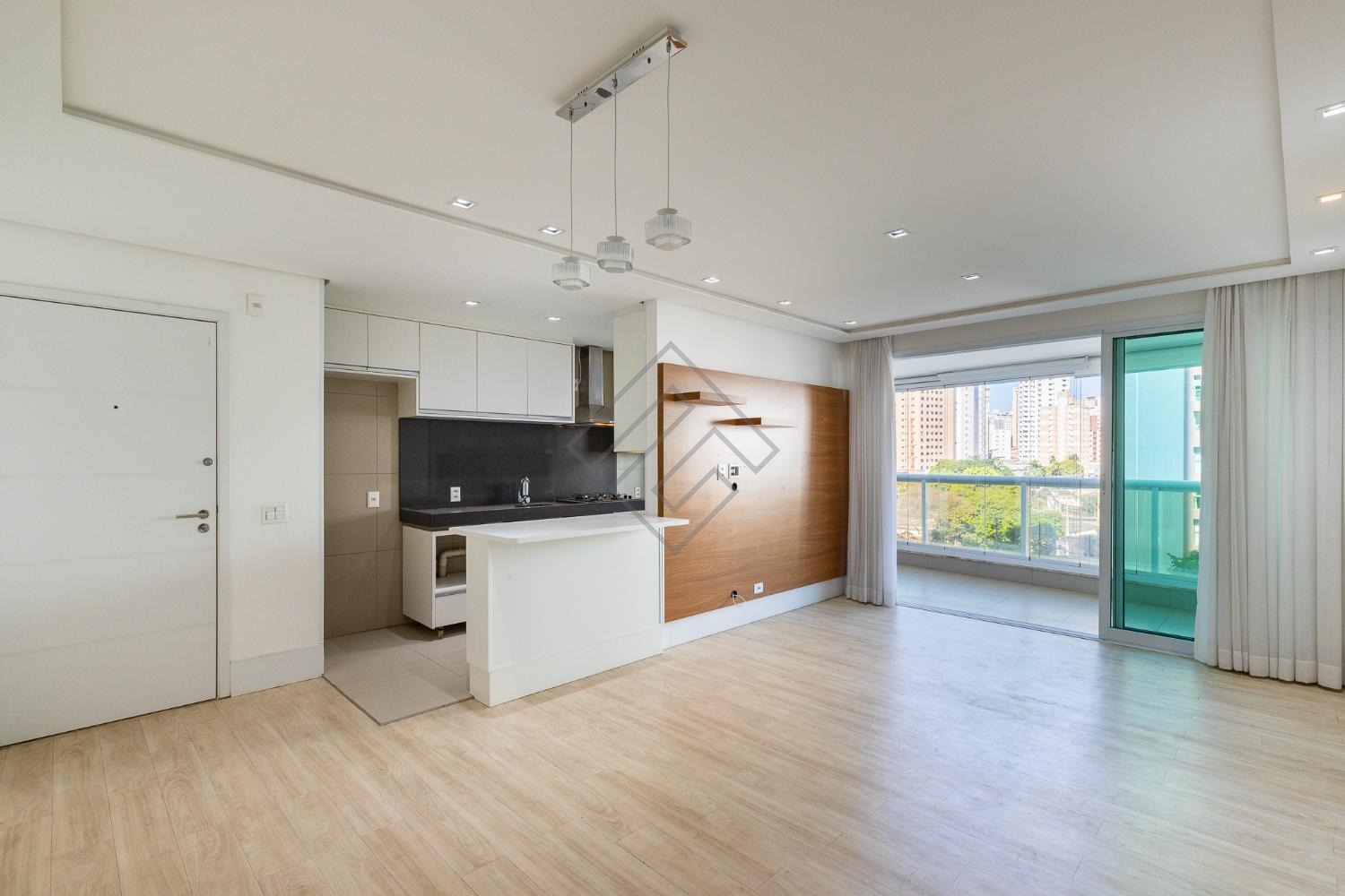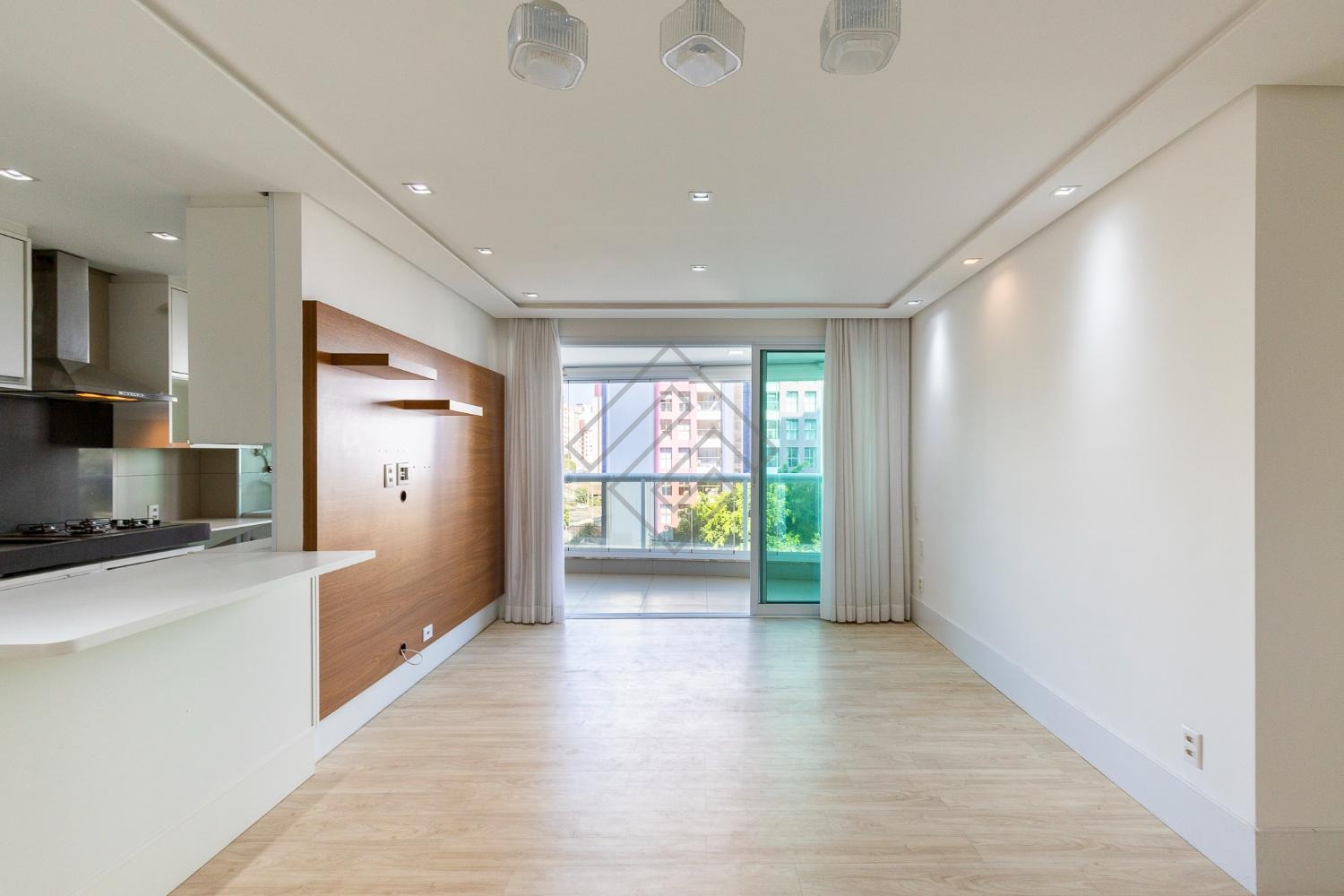 - Sala para 2 ambientes, com ampla varanda gourmet e churrasqueira à gás