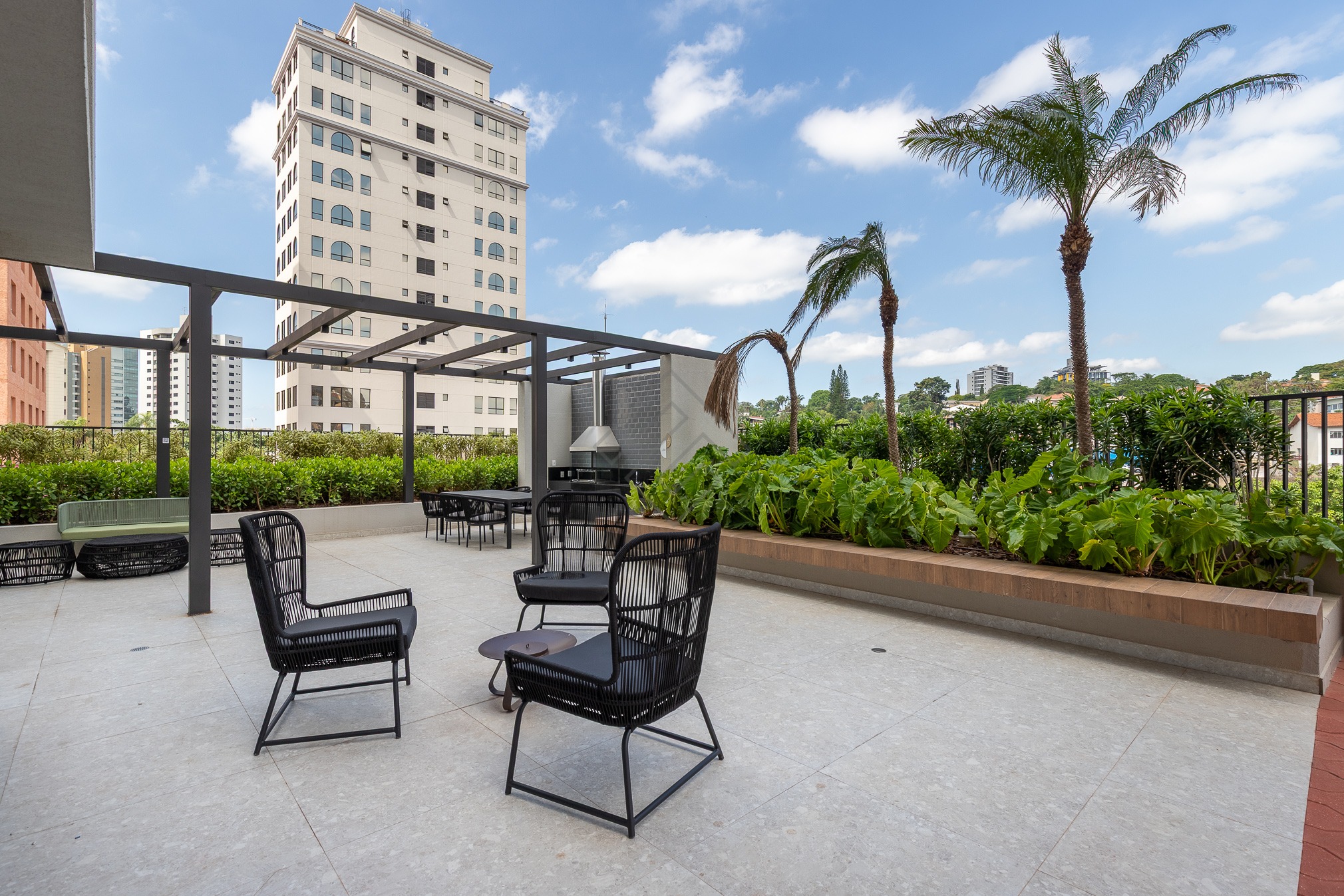 - Varanda gourmet com churrasqueira à carvão;