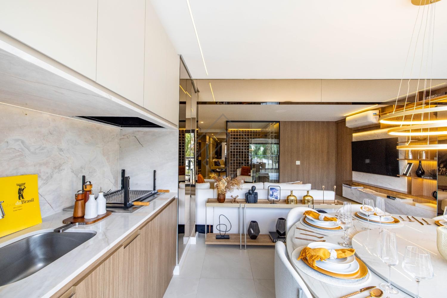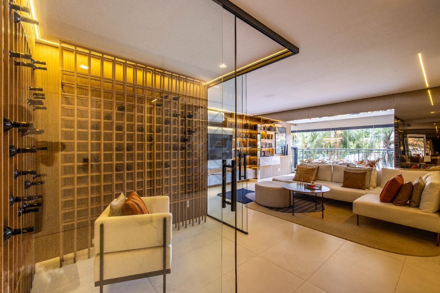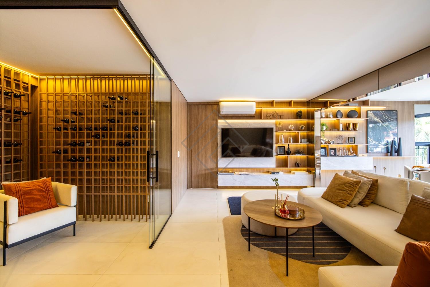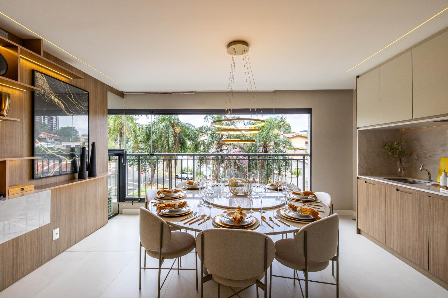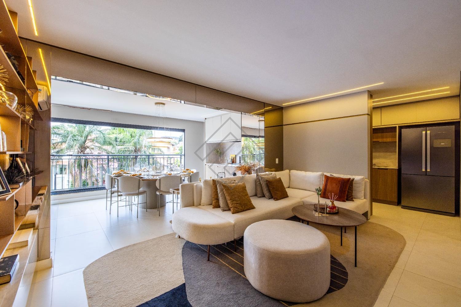 - Sala integrada com ambientes elegantes e iluminação planejada