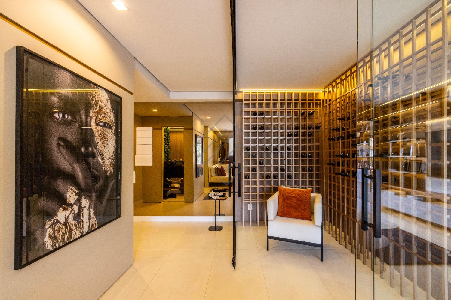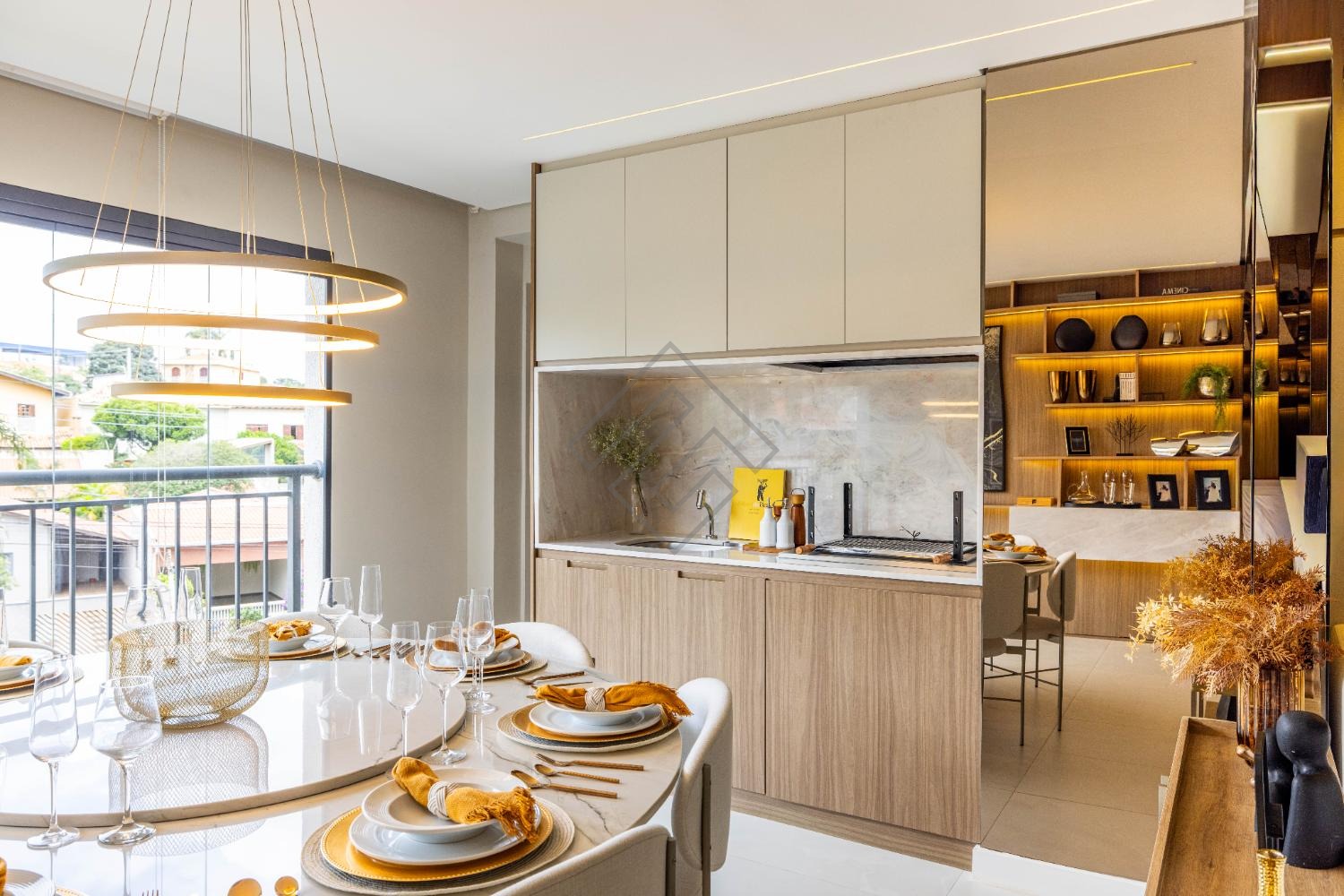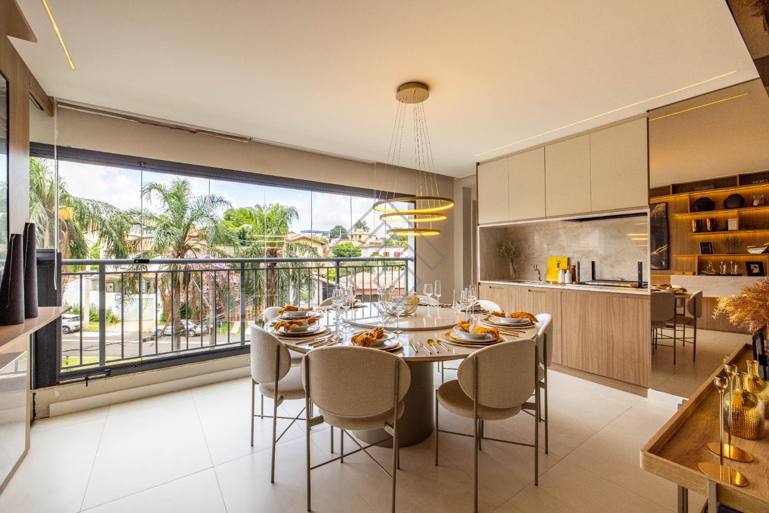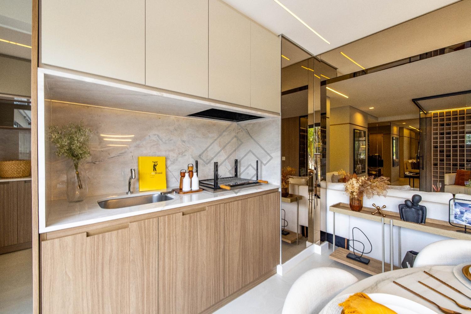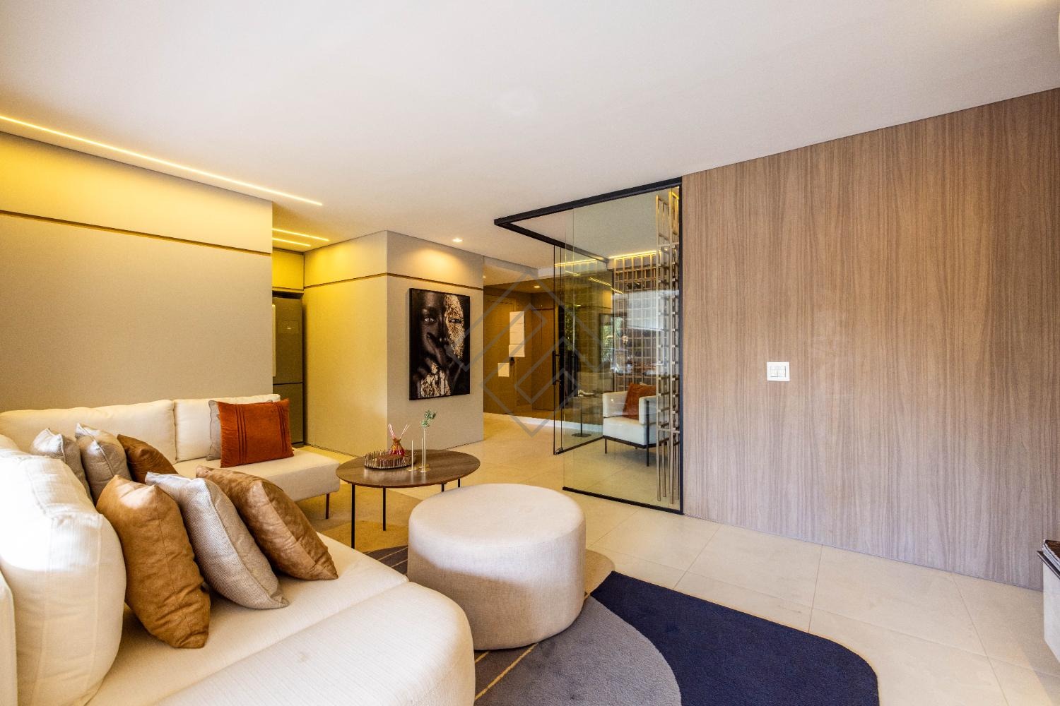 - Sala integrada com ambientes elegantes e iluminação planejada