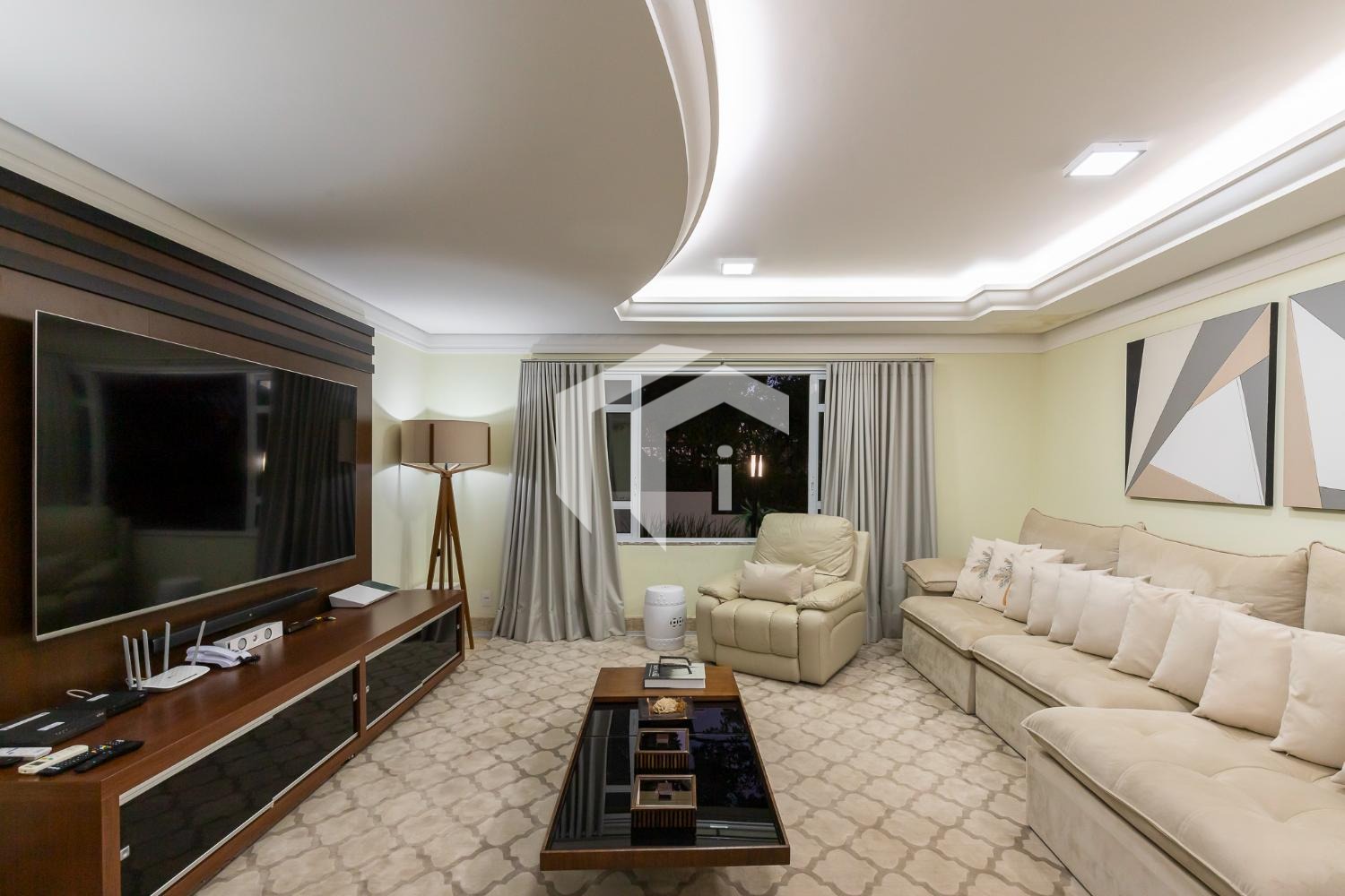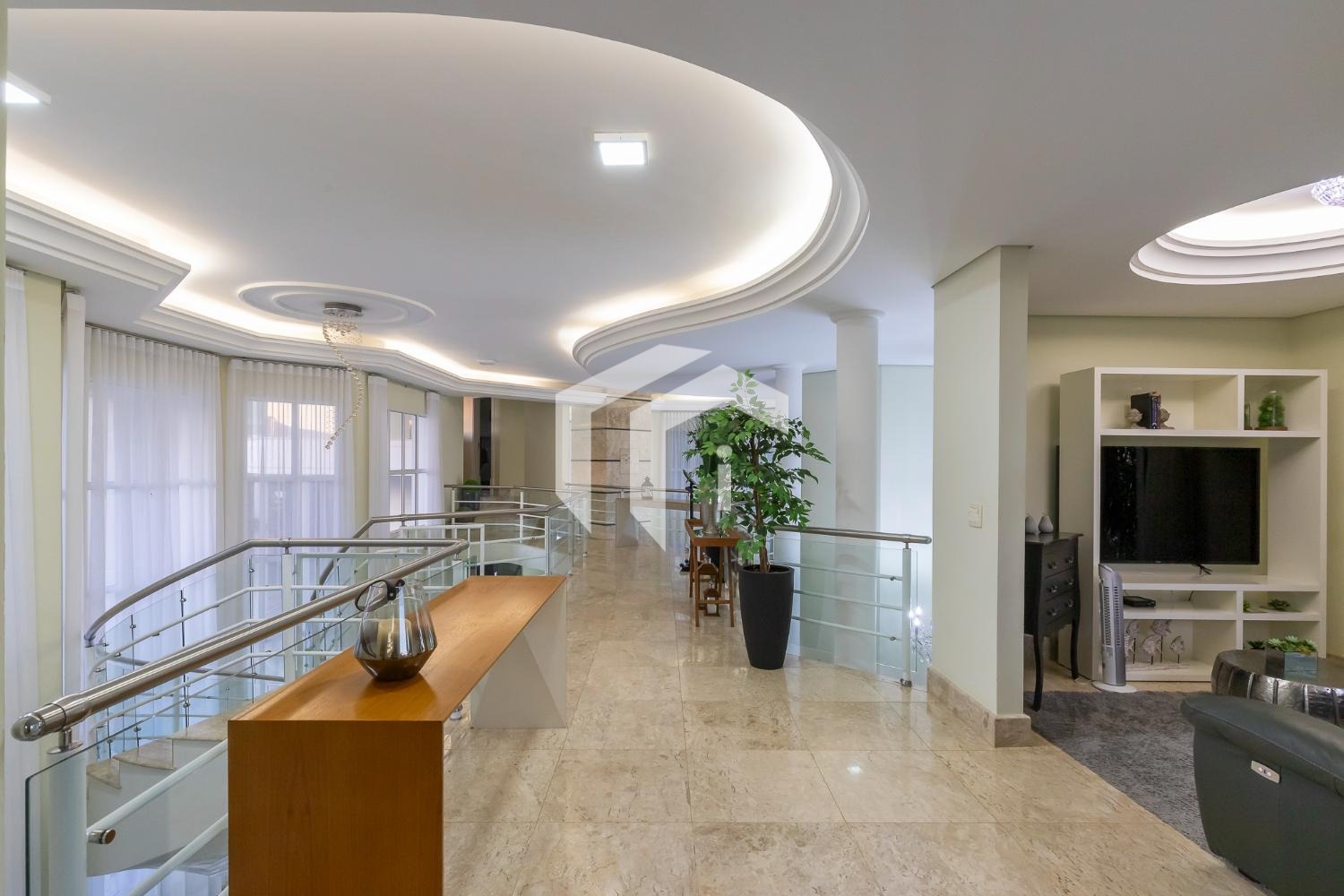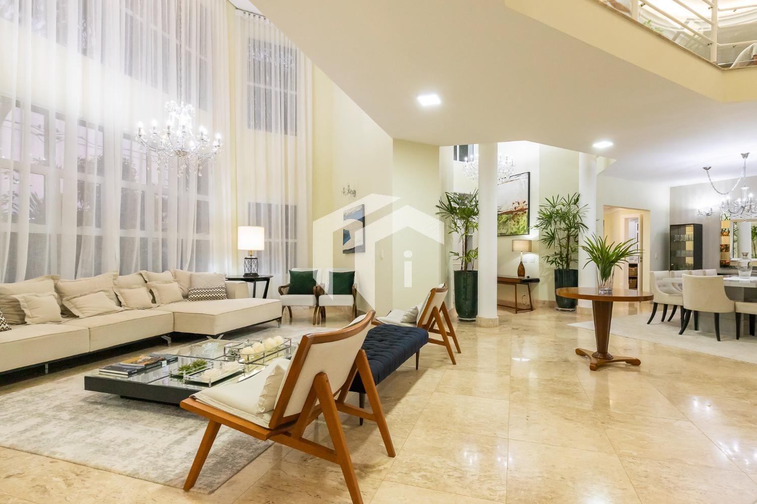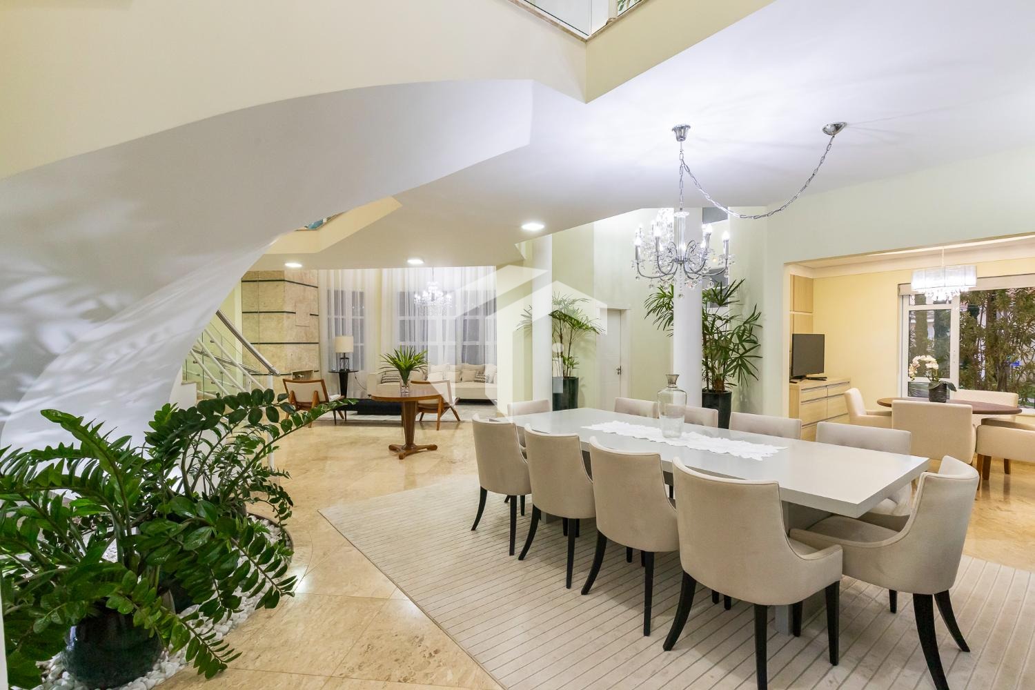 São 4 suítes completas sendo 2 master, sala para 5 ambientes com pé direito alto e 2 salas de Tv's, escritório, copa, cozinha totalmente planejada, área de serviço com dependência de funcionários.