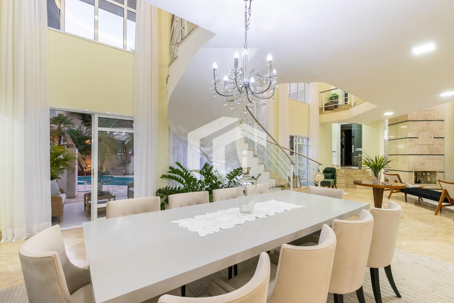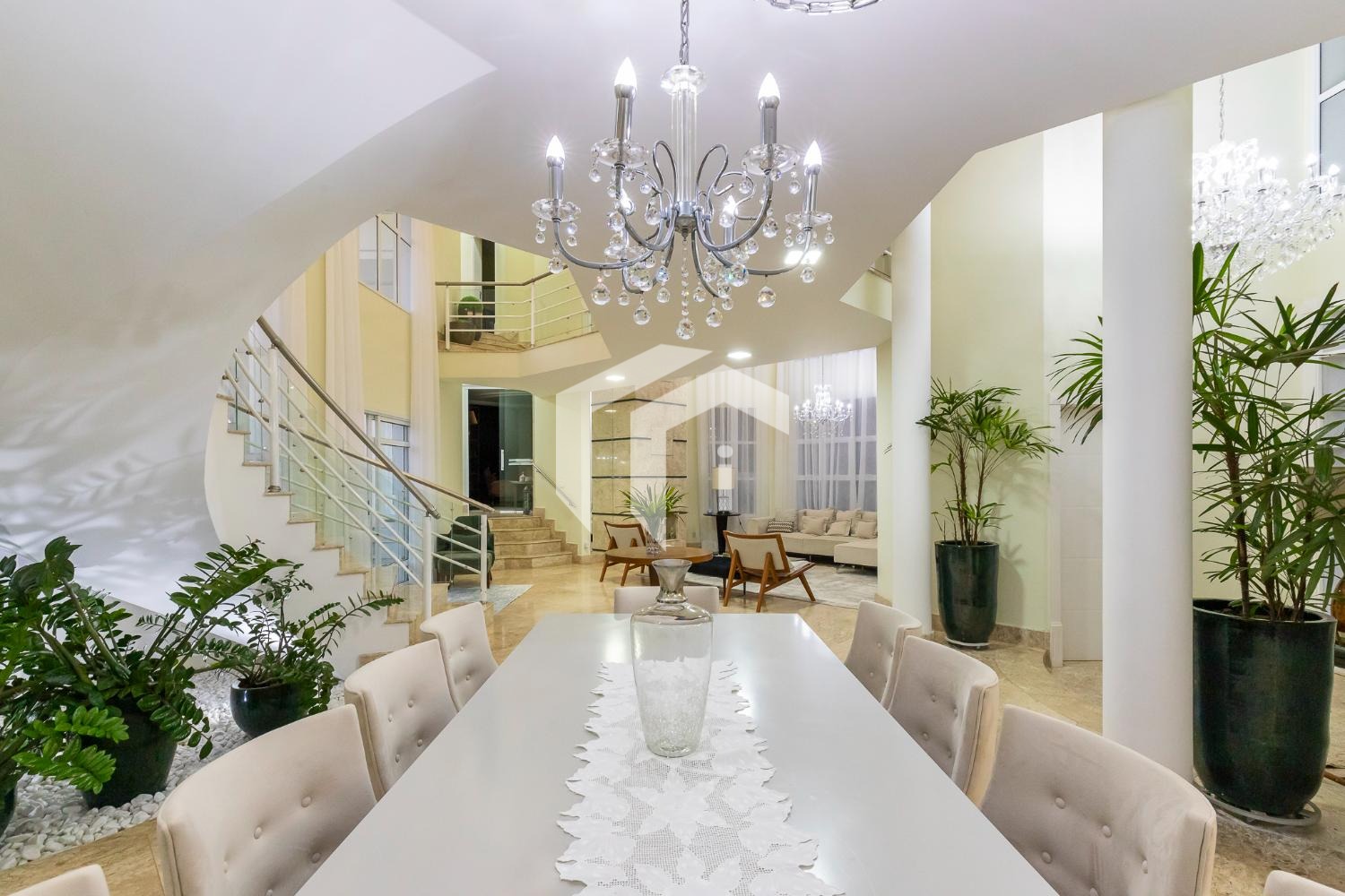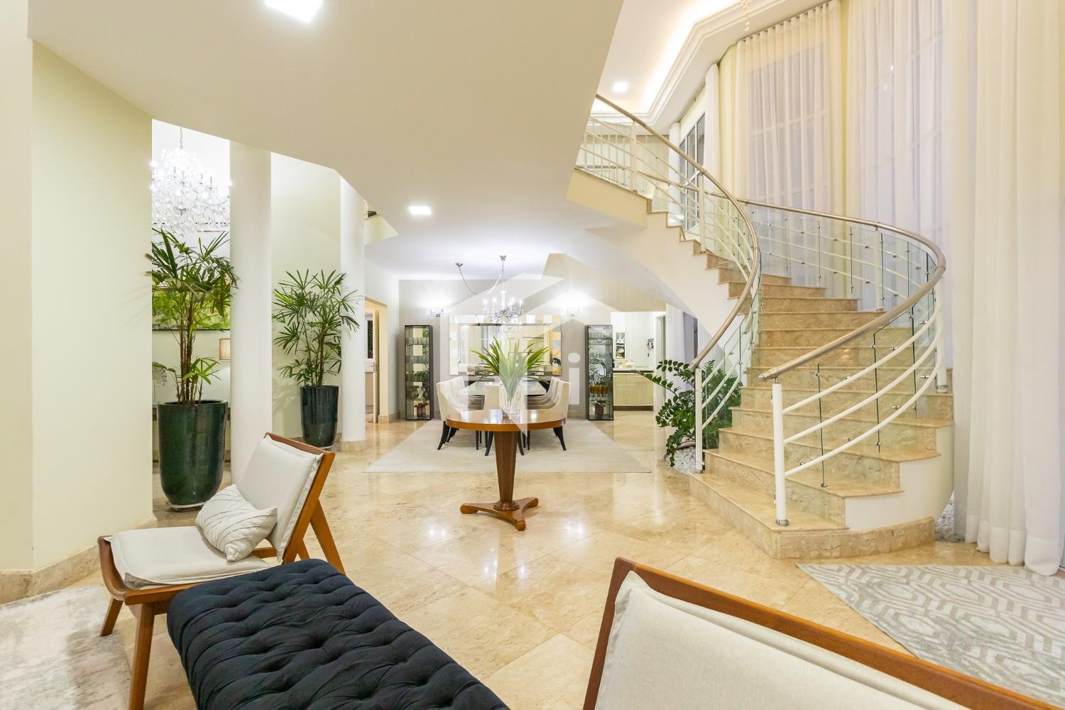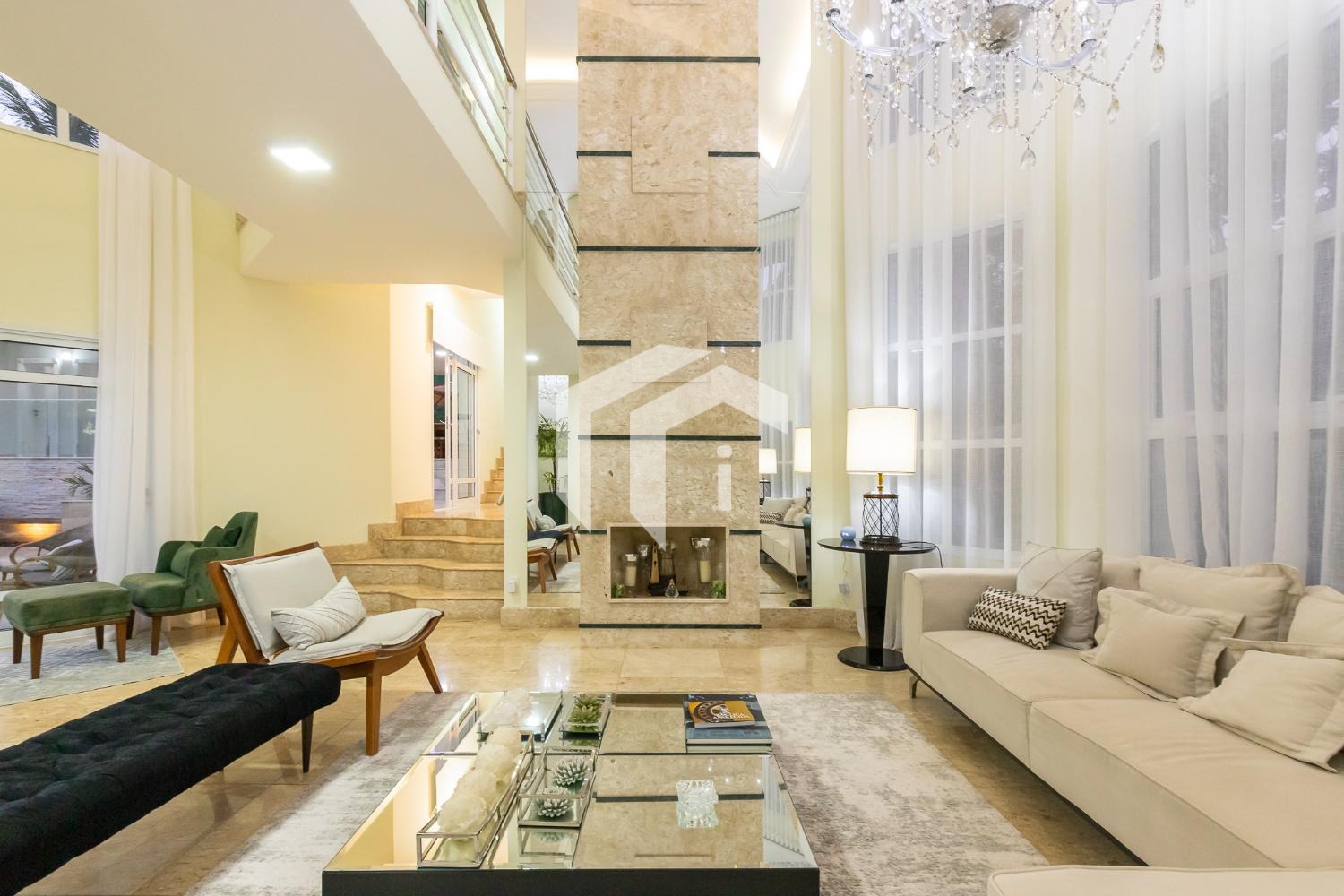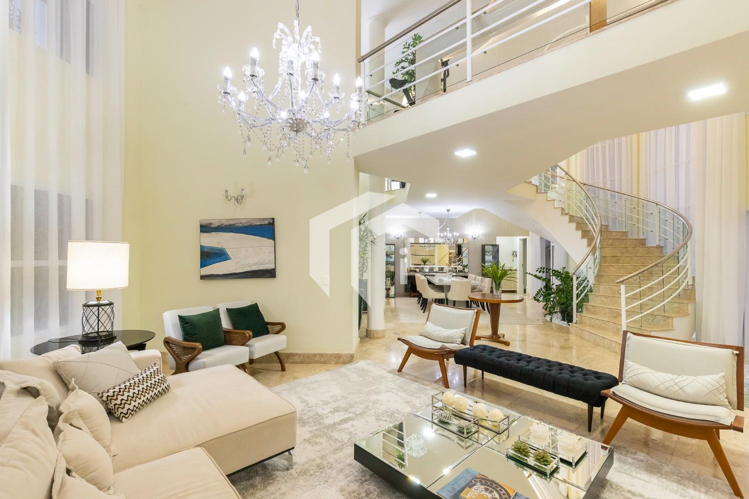 São 4 suítes completas sendo 2 master, sala para 5 ambientes com pé direito alto e 2 salas de Tv's, escritório, copa, cozinha totalmente planejada, área de serviço com dependência de funcionários.