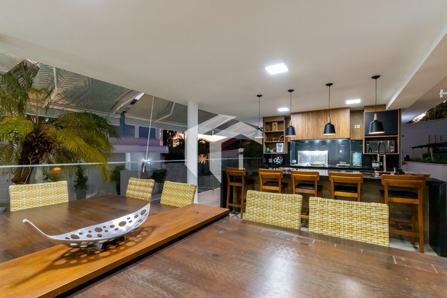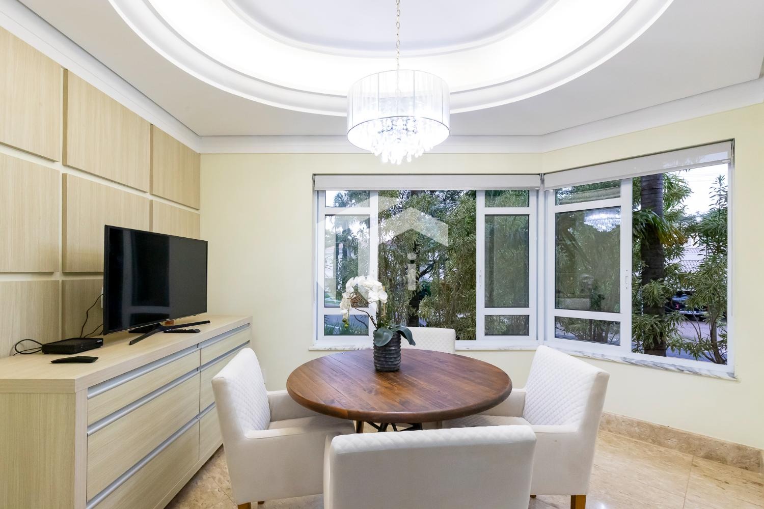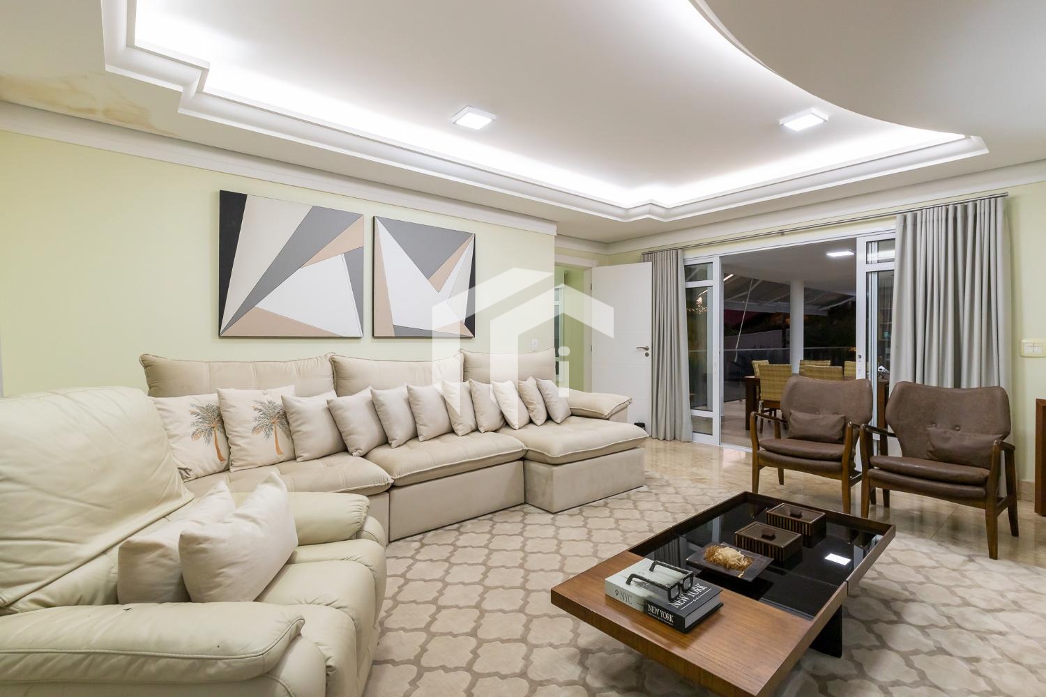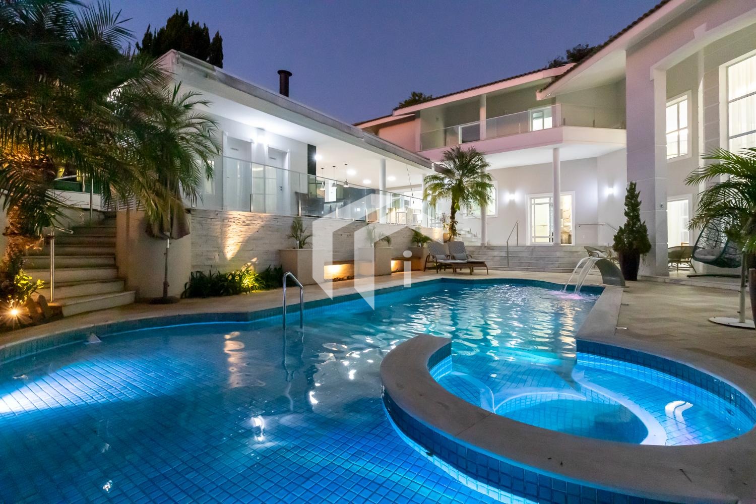 São 4 suítes completas sendo 2 master, sala para 5 ambientes com pé direito alto e 2 salas de Tv's, escritório, copa, cozinha totalmente planejada, área de serviço com dependência de funcionários.