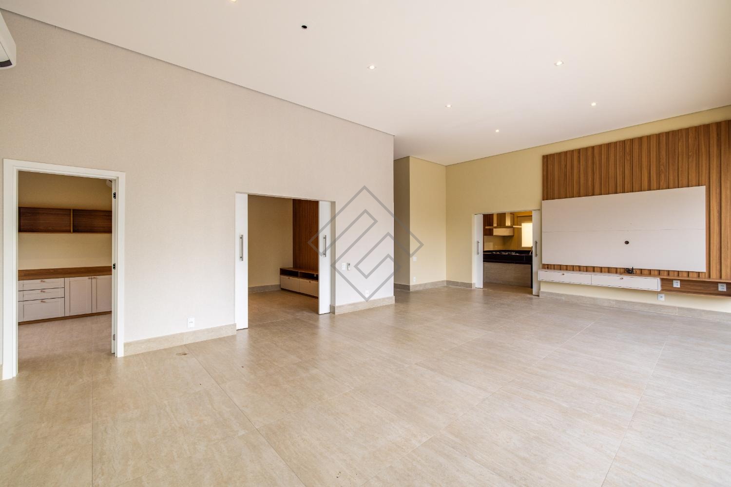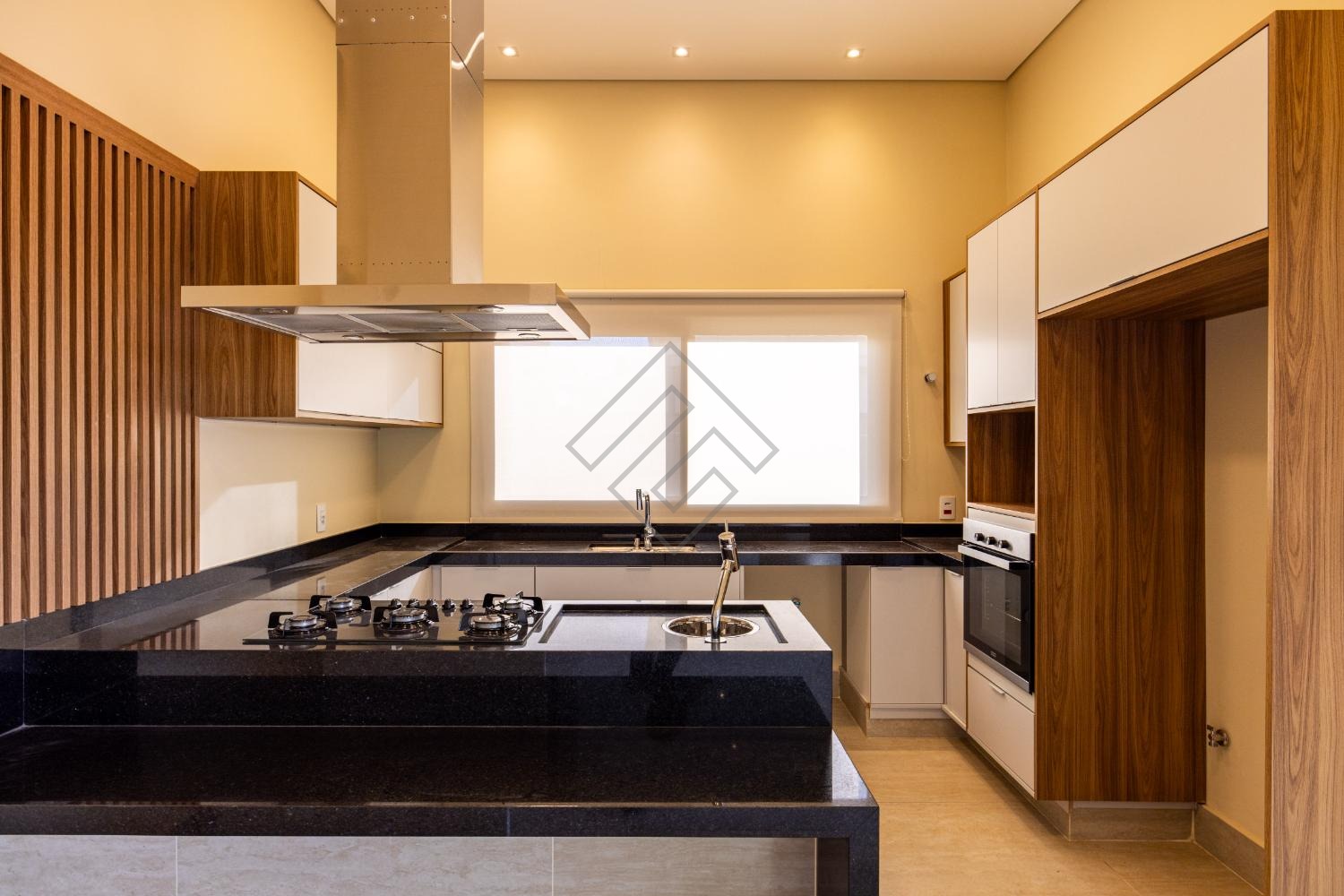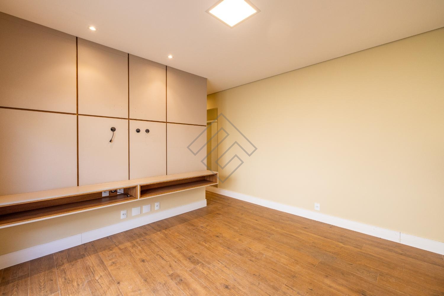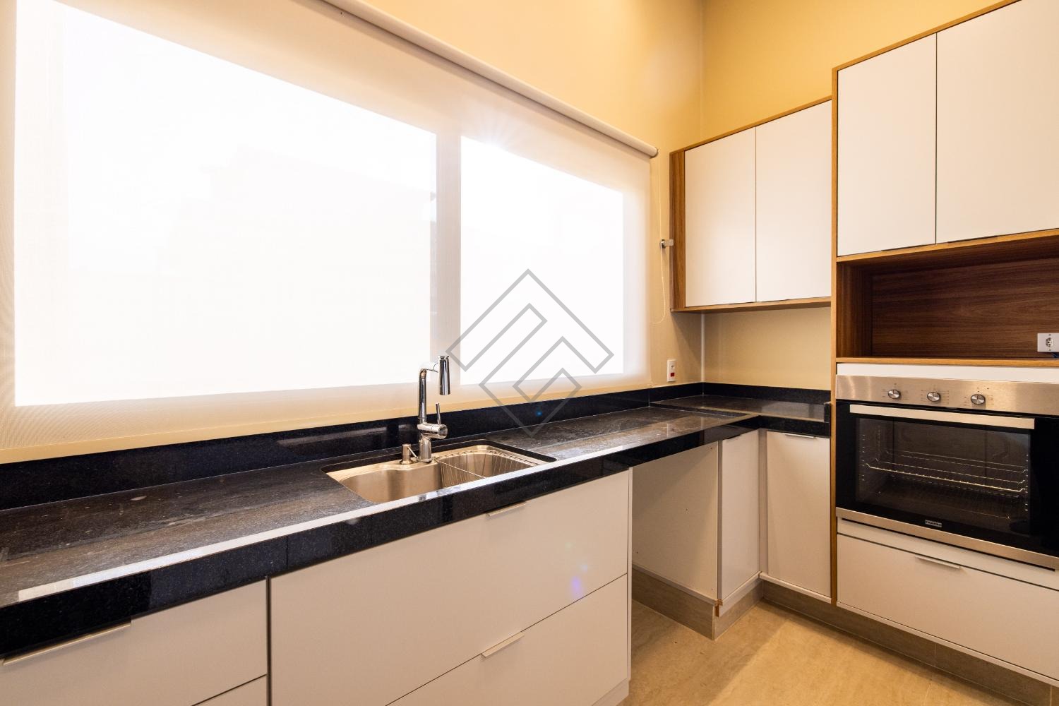 - Sala de estar e jantar com ambientes integrados, cozinha com armários planejados, cooktop e torre quente