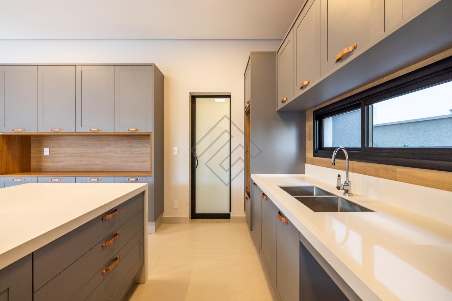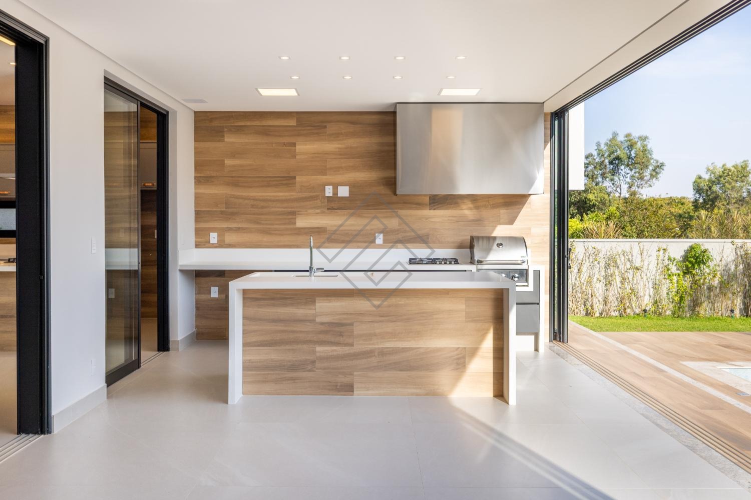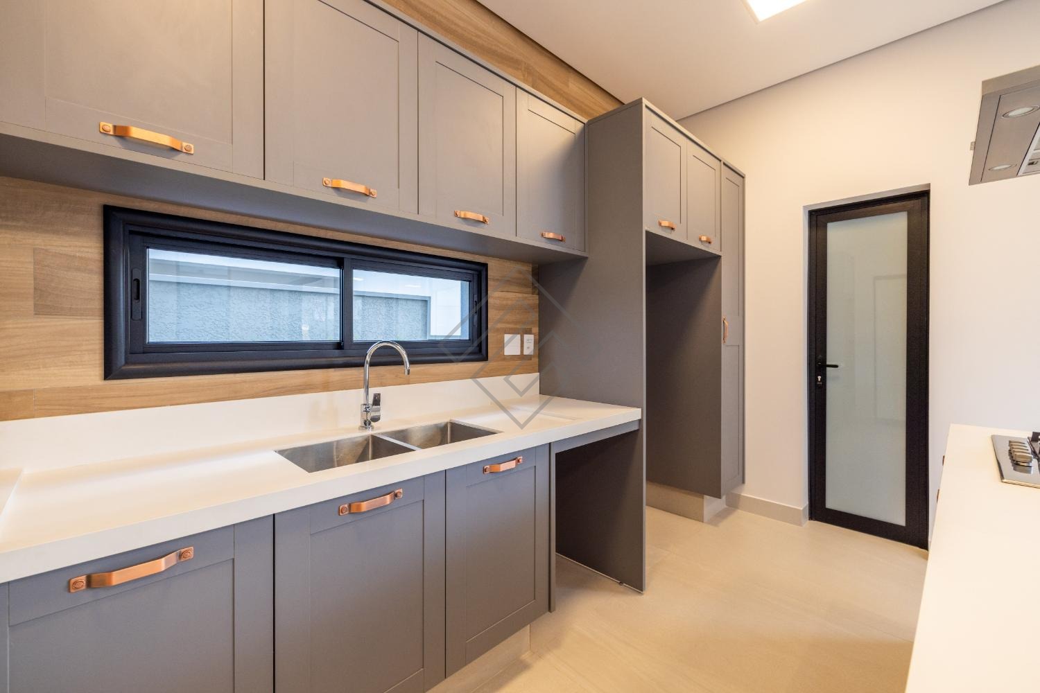 • Espaço gourmet fechado com churrasqueira a gás, cooktop e armários Kitchens
