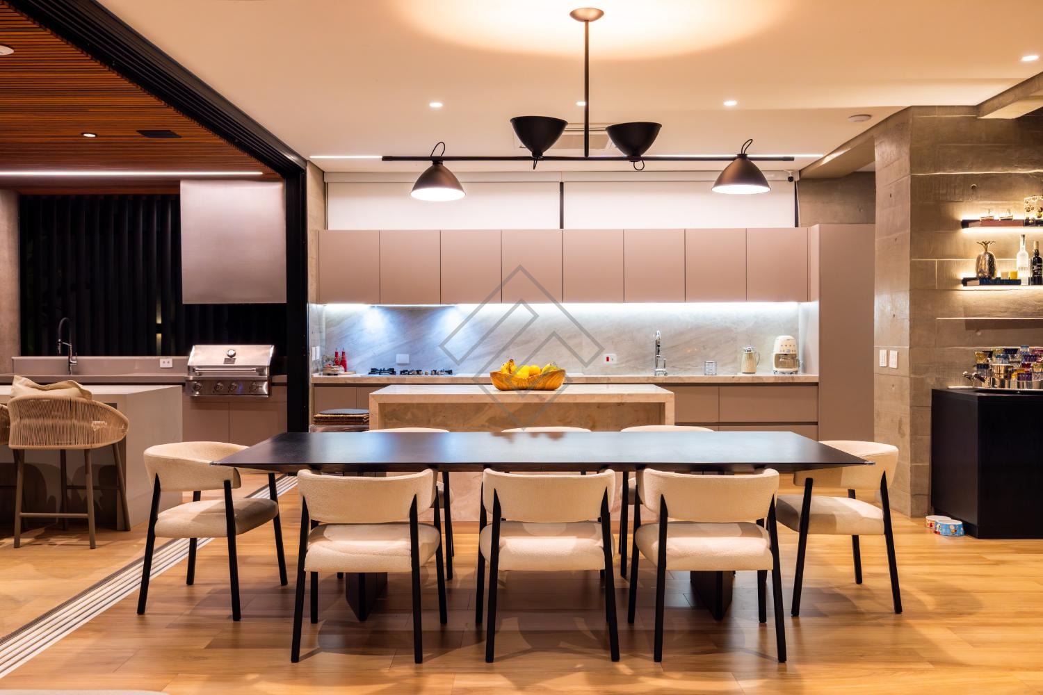 * Espaço gourmet em Cumaru e Freijó com som integrado
