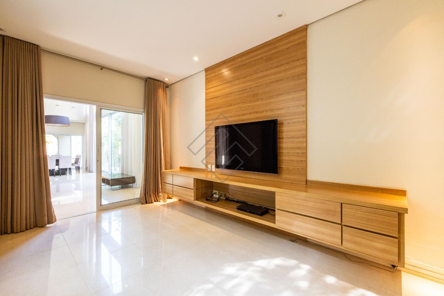 Escritório e salas amplas de TV, estar e jantar