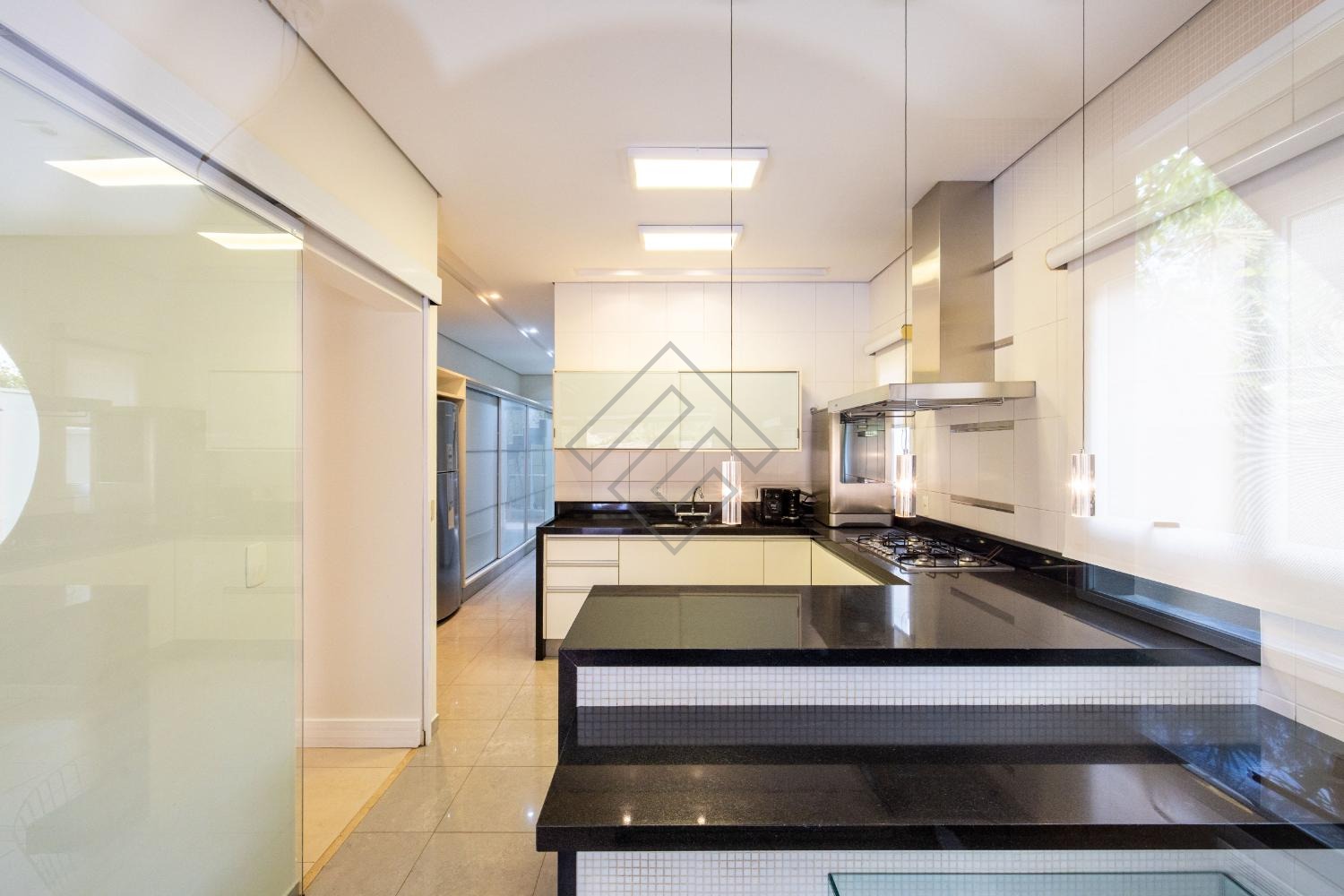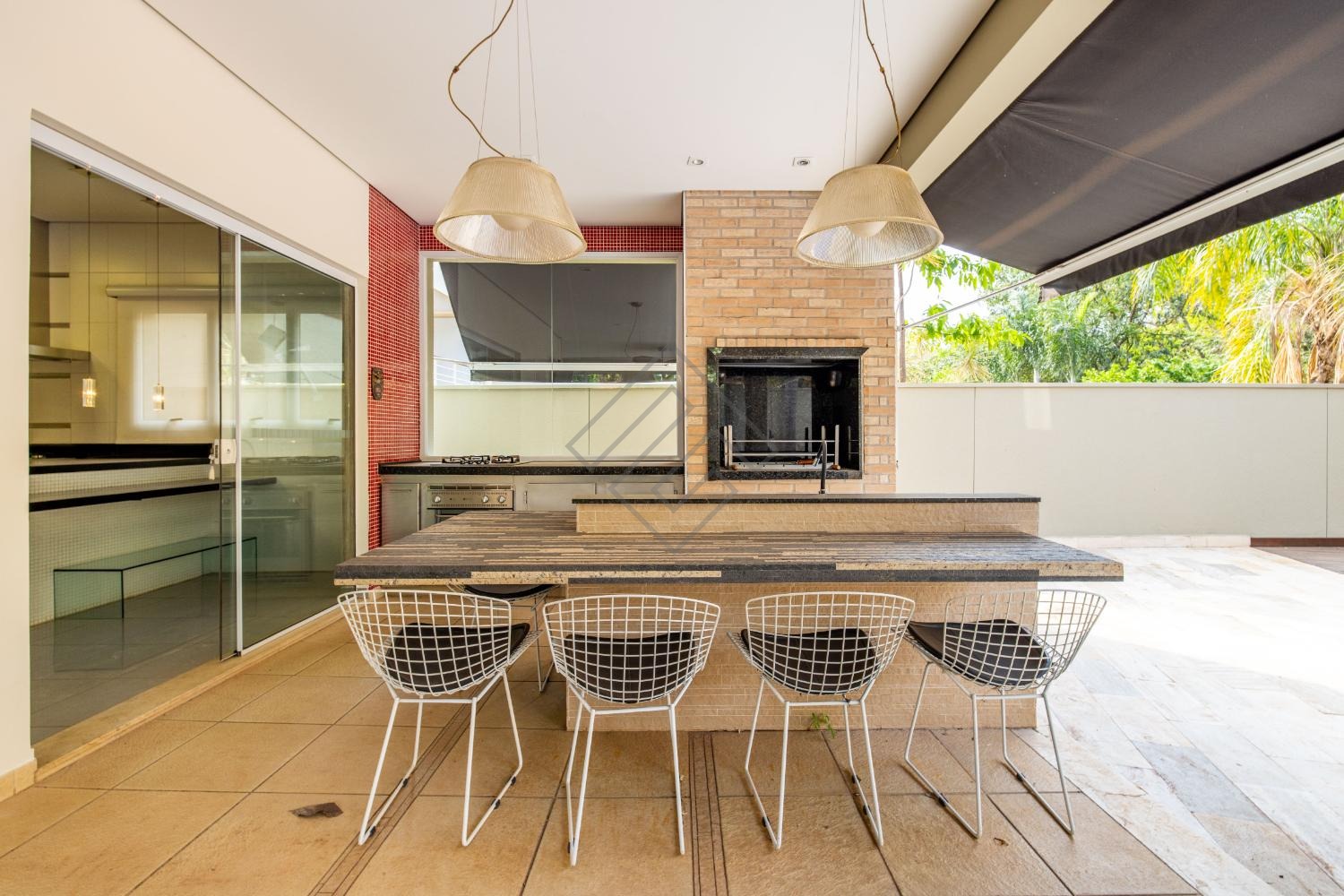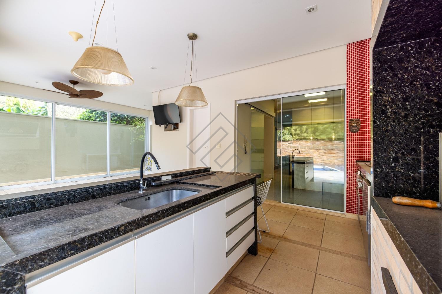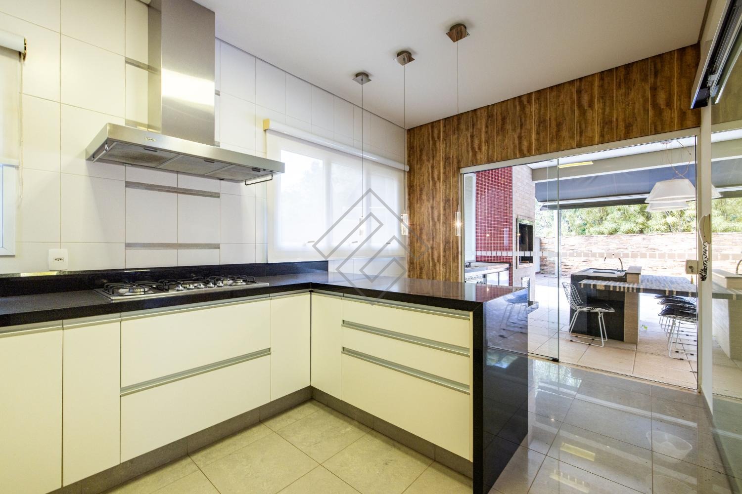 Área gourmet com cooktop e churrasqueira