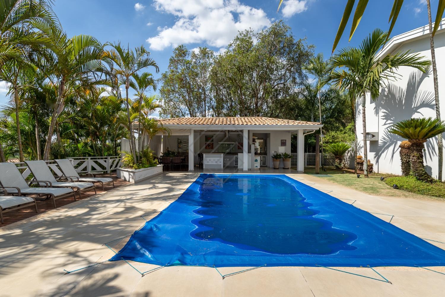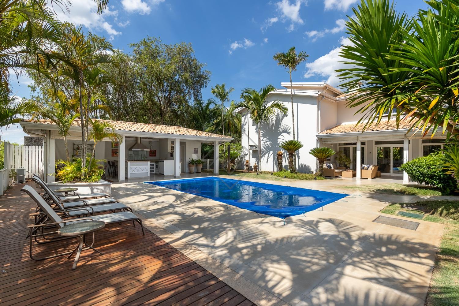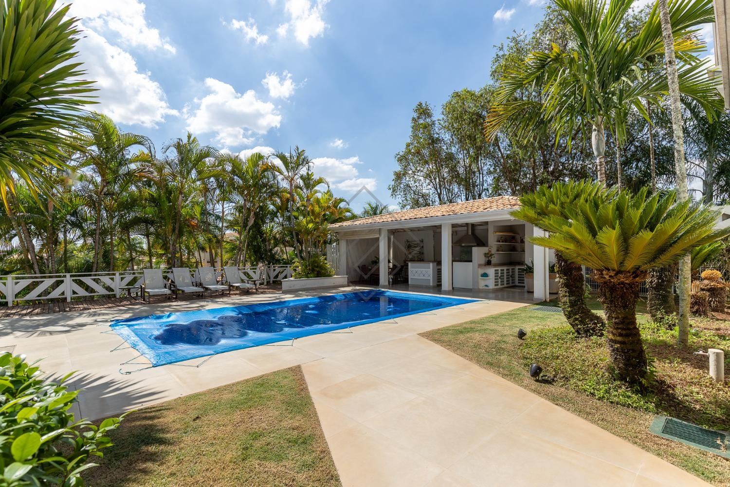 - Área gourmet completa com marcenaria ampla, churrasqueira à carvão, coifa, piscina e um exuberante paisagismo;