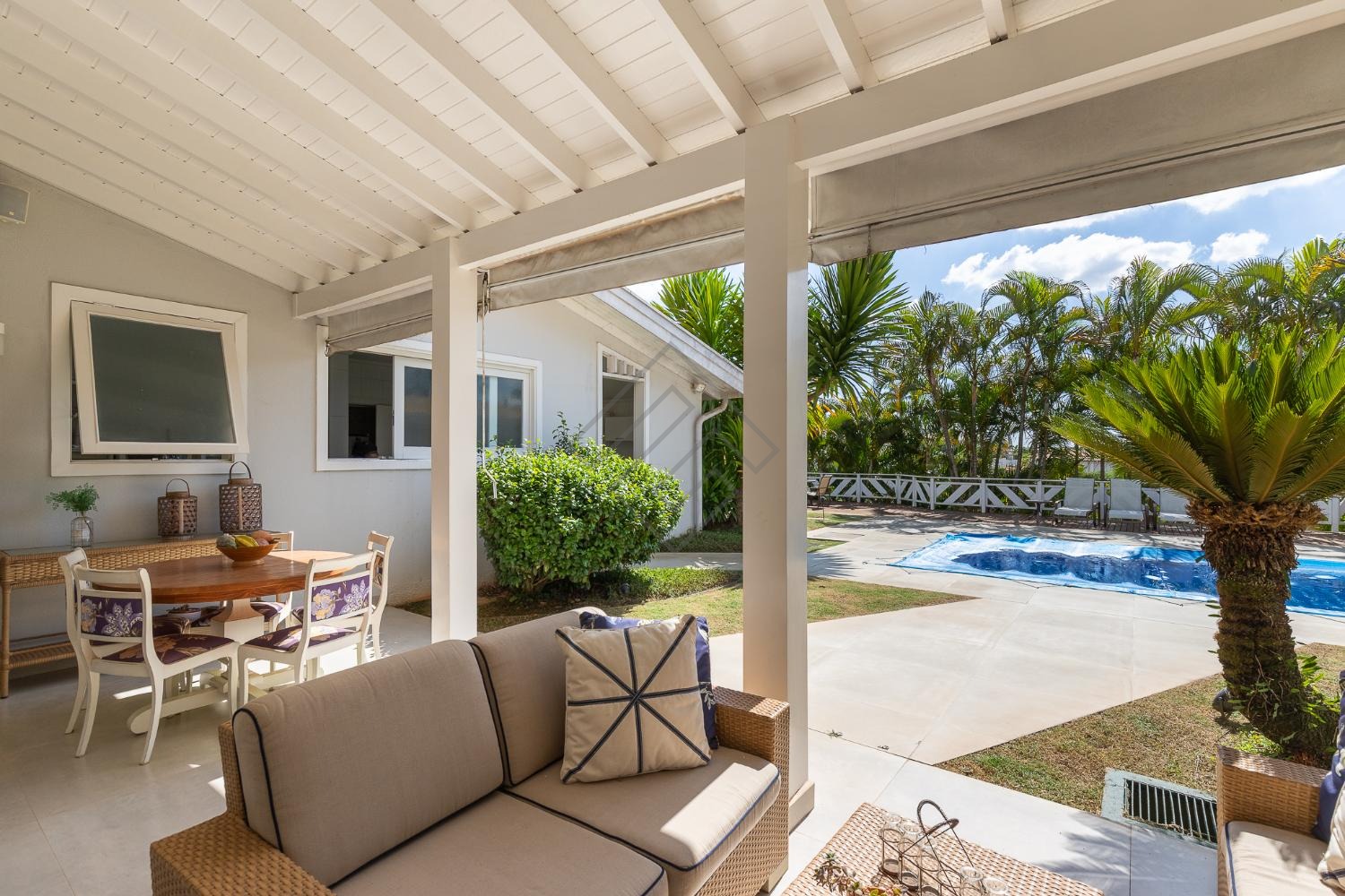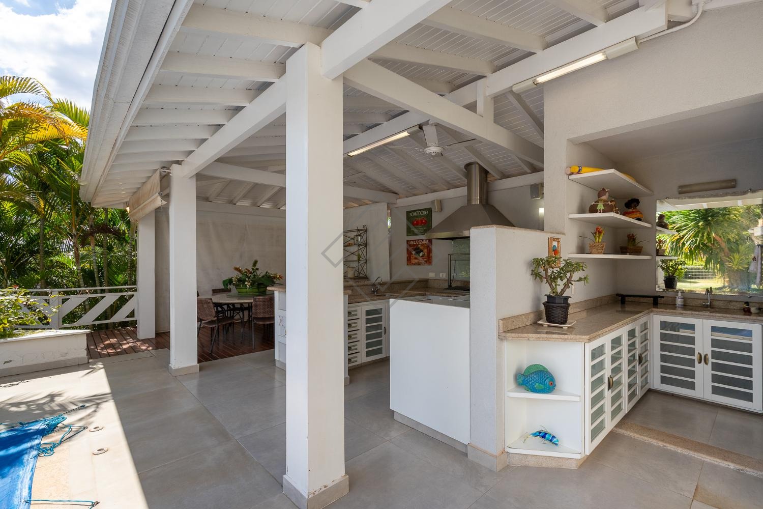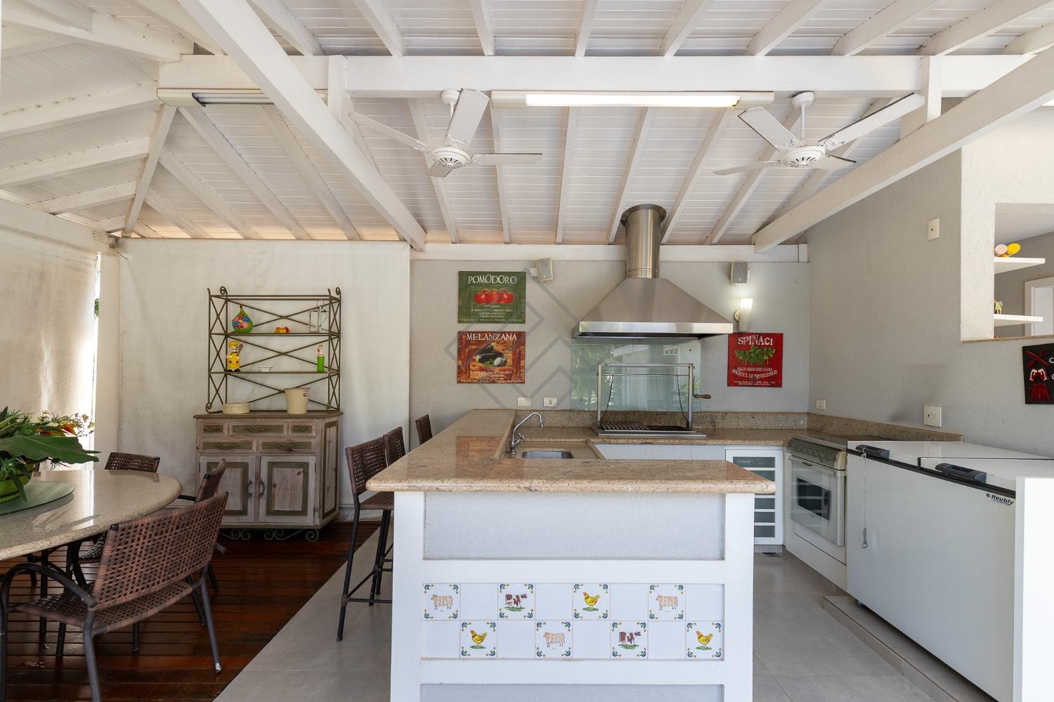 - Área gourmet completa com marcenaria ampla, churrasqueira à carvão, coifa, piscina e um exuberante paisagismo;