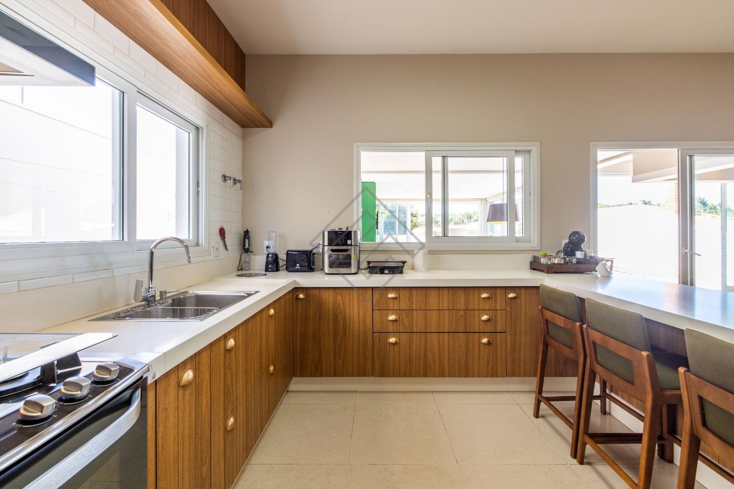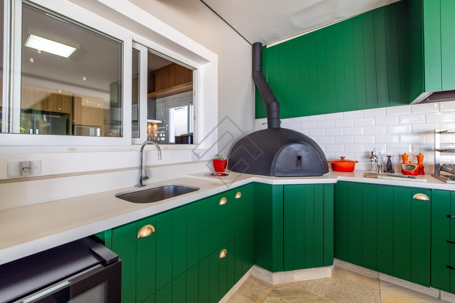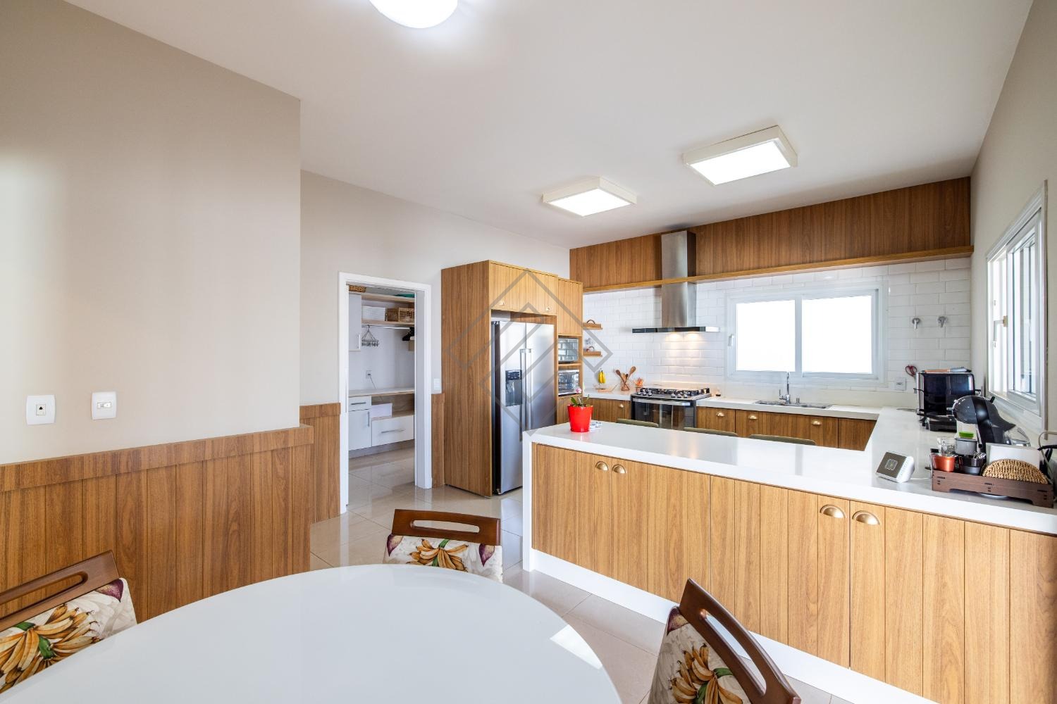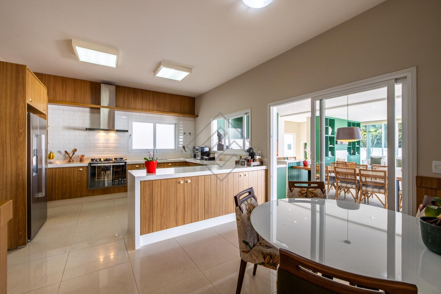 - Cozinha planejada ampla em armários com integração para o gourmet;