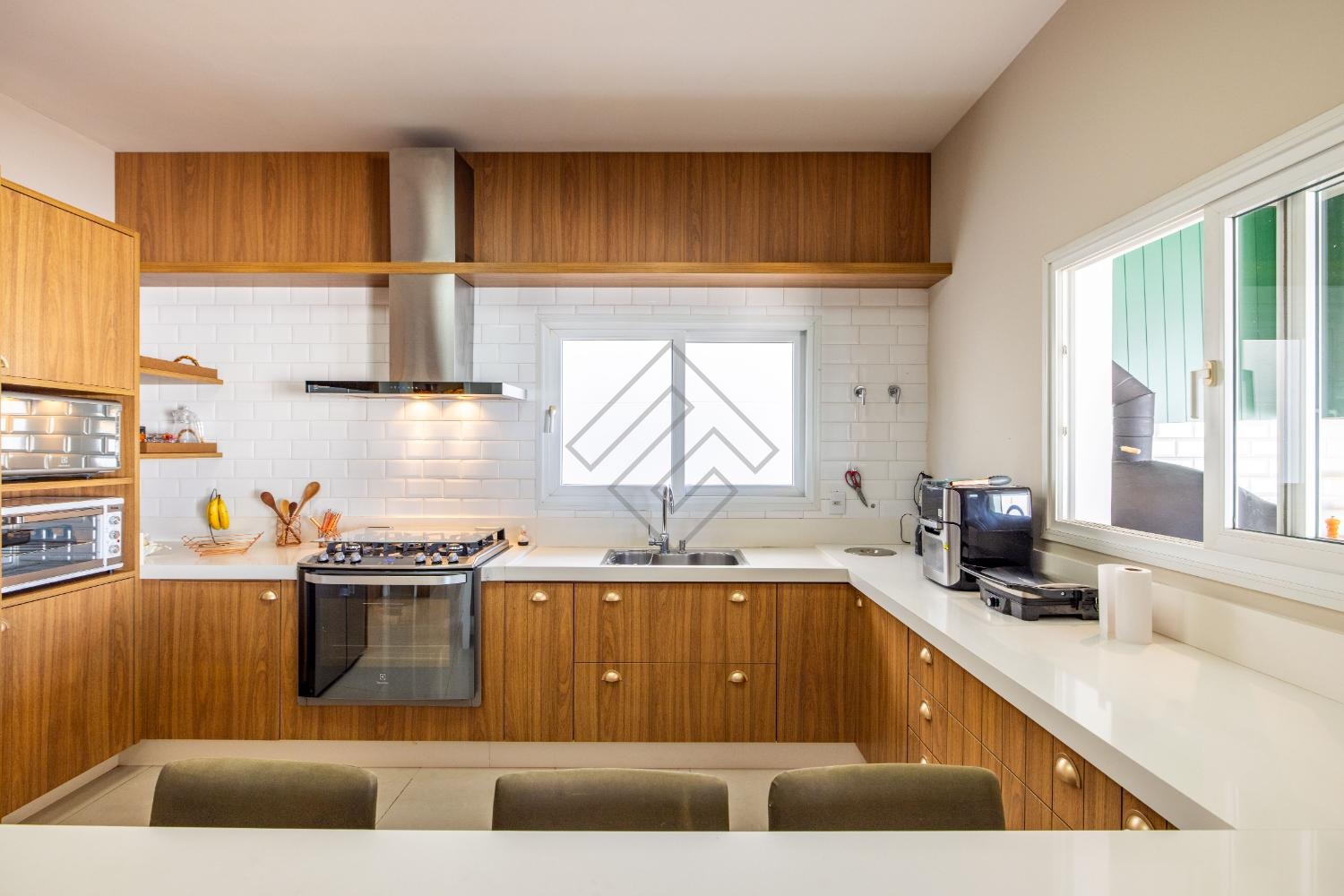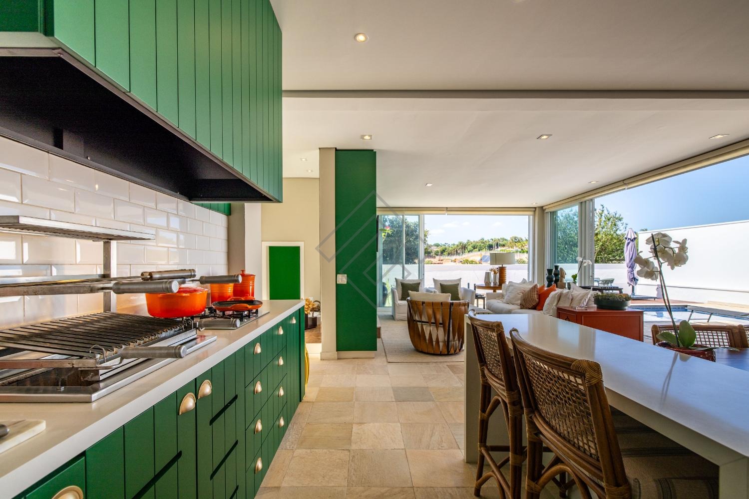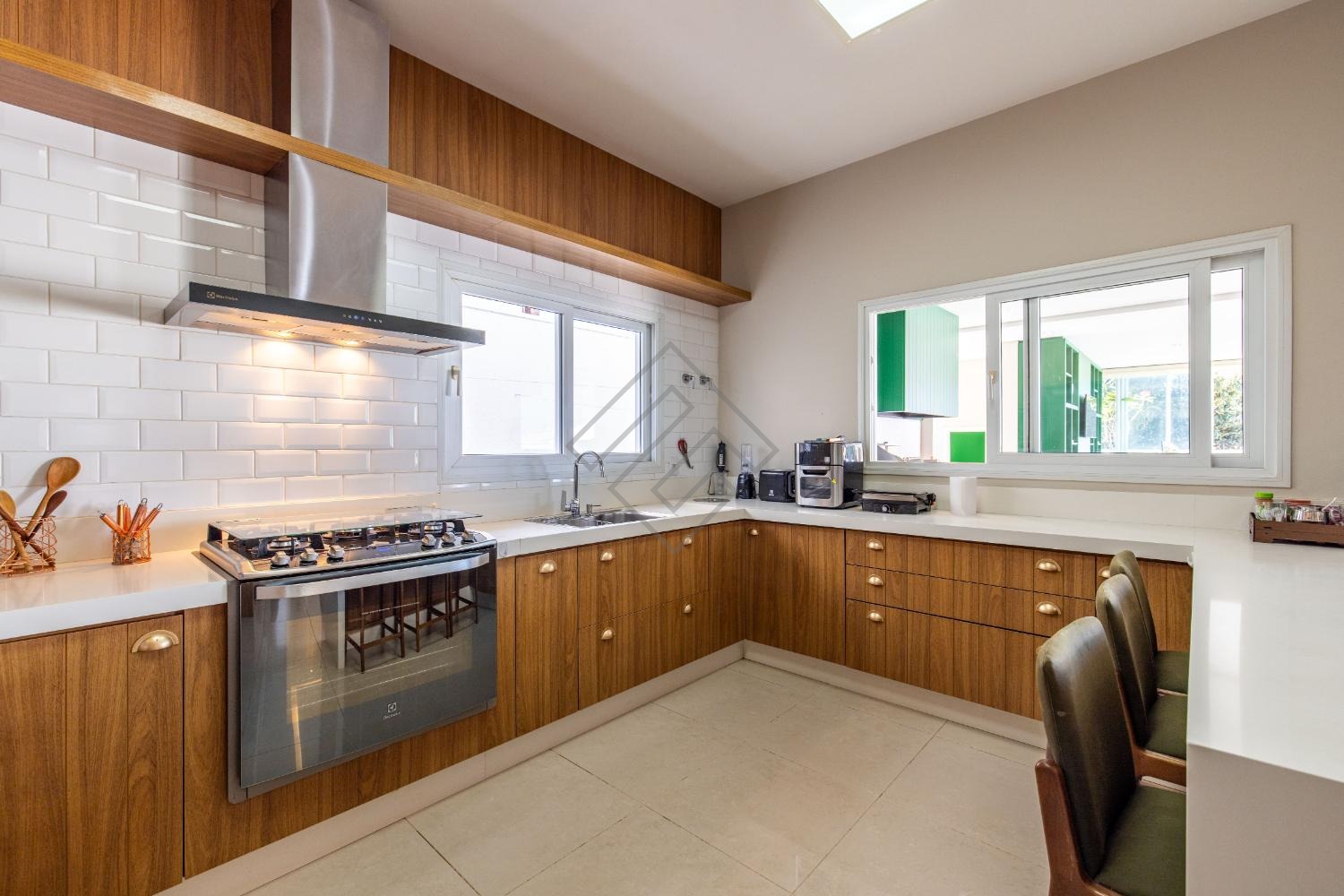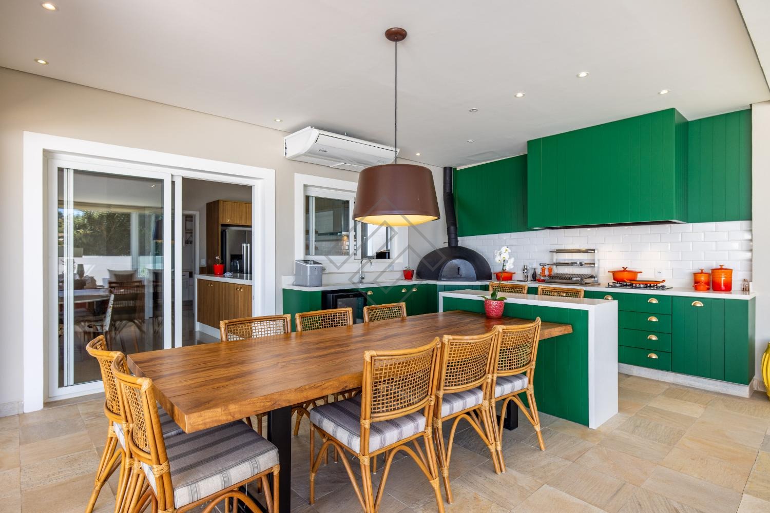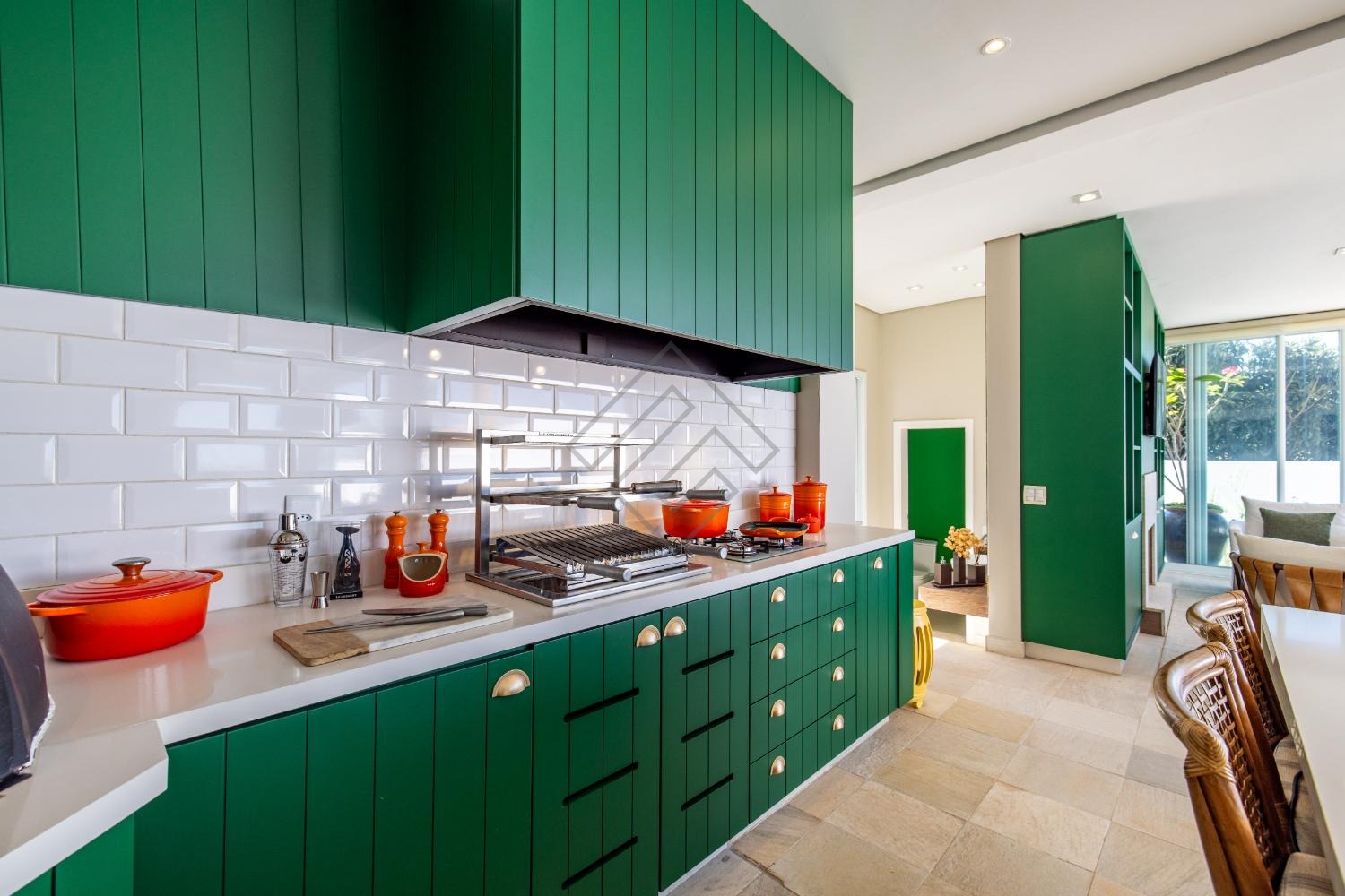 - Cozinha planejada ampla em armários com integração para o gourmet;