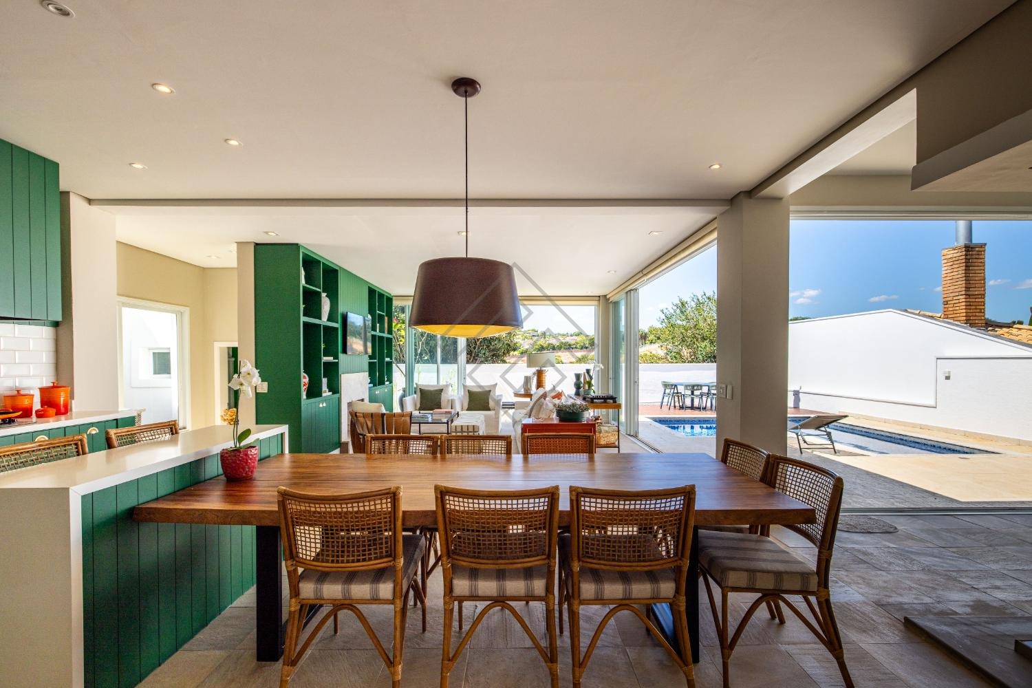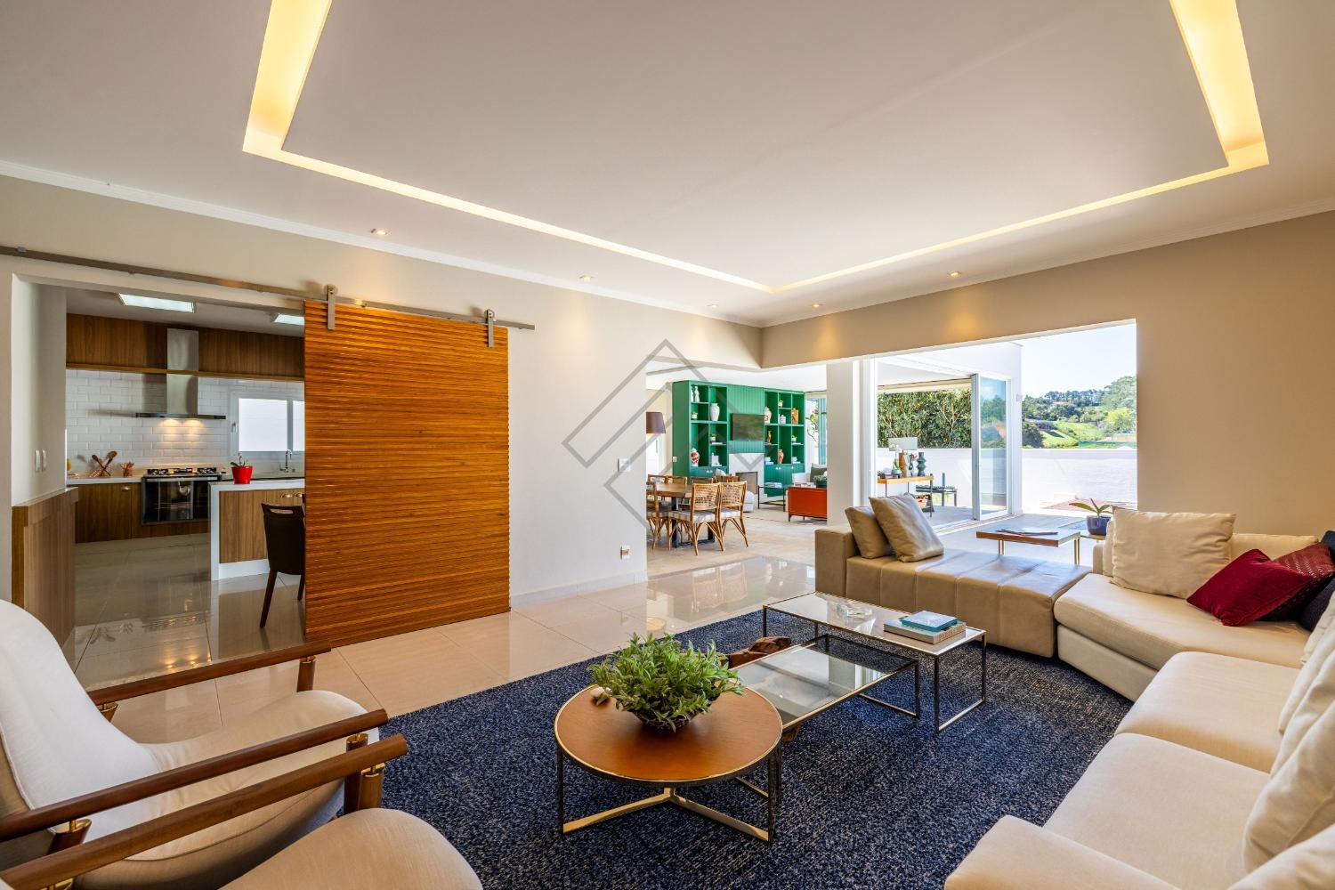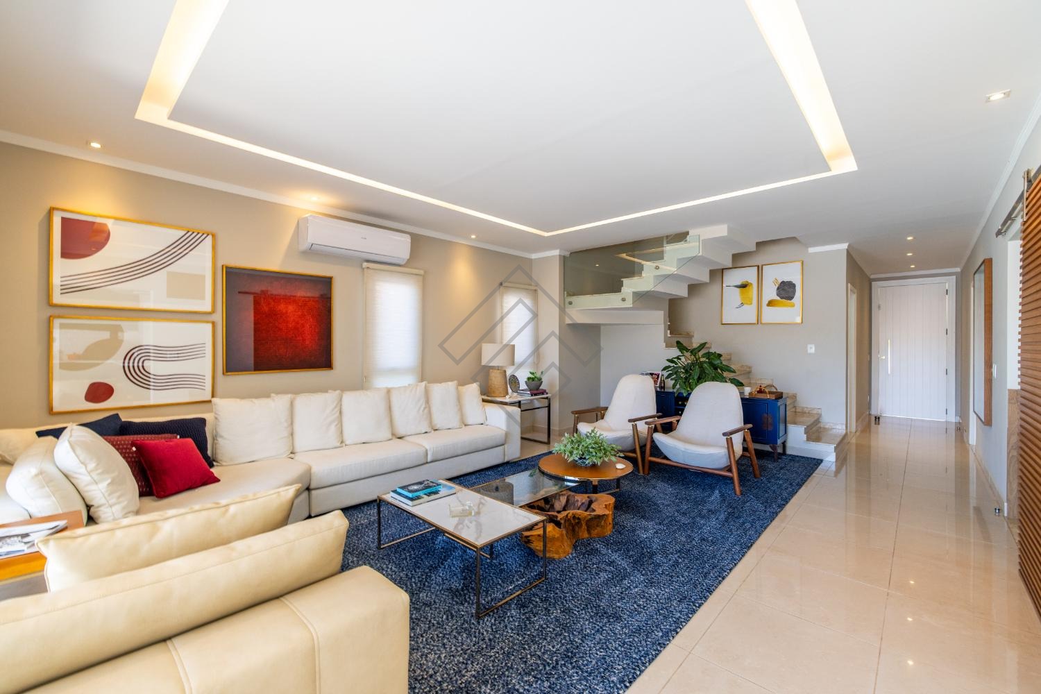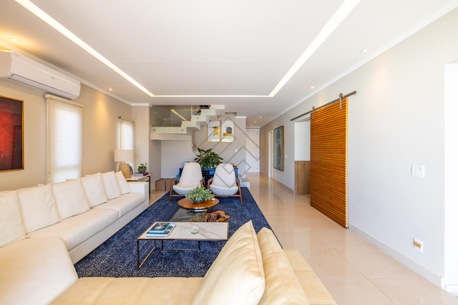 - Amplo living com 2 ambientes com pé direito duplo;