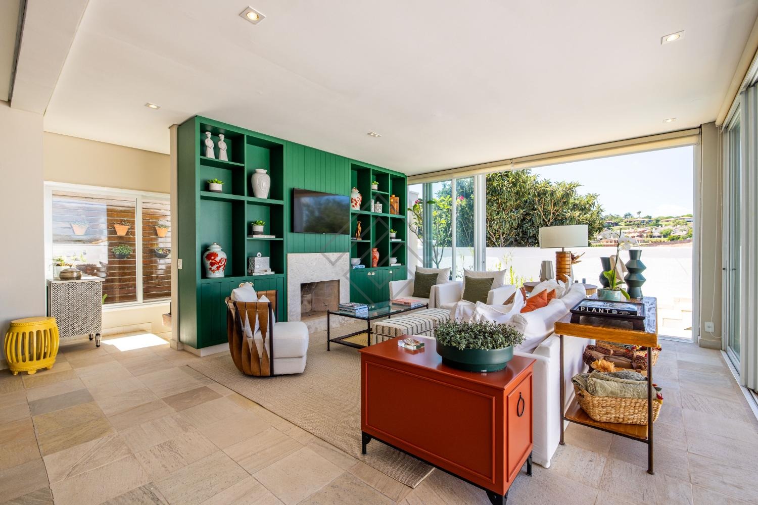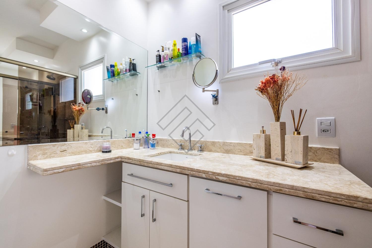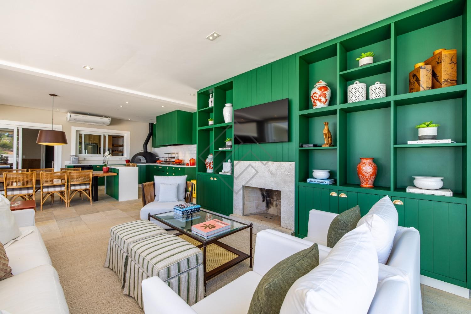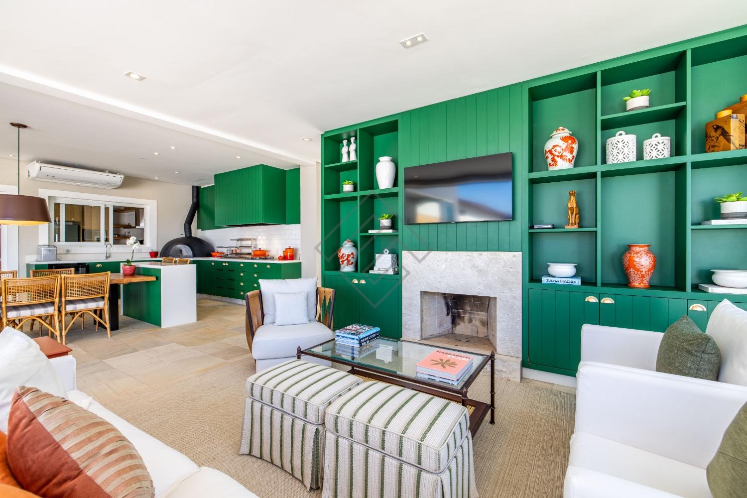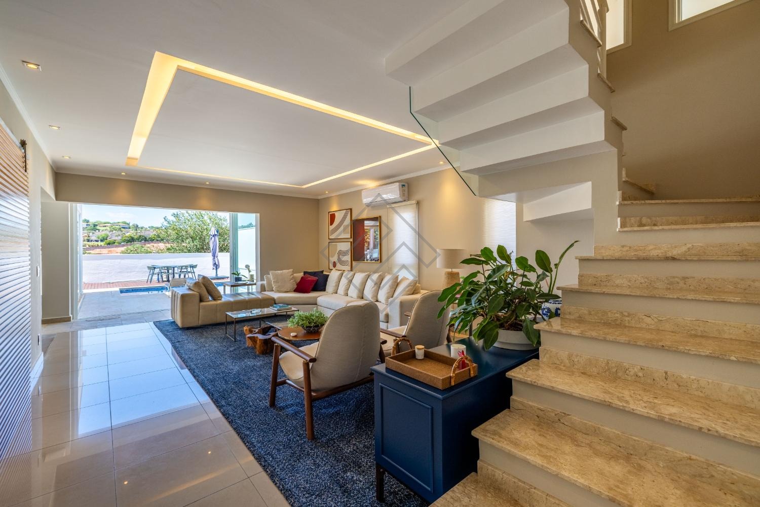 - Amplo living com 2 ambientes com pé direito duplo;