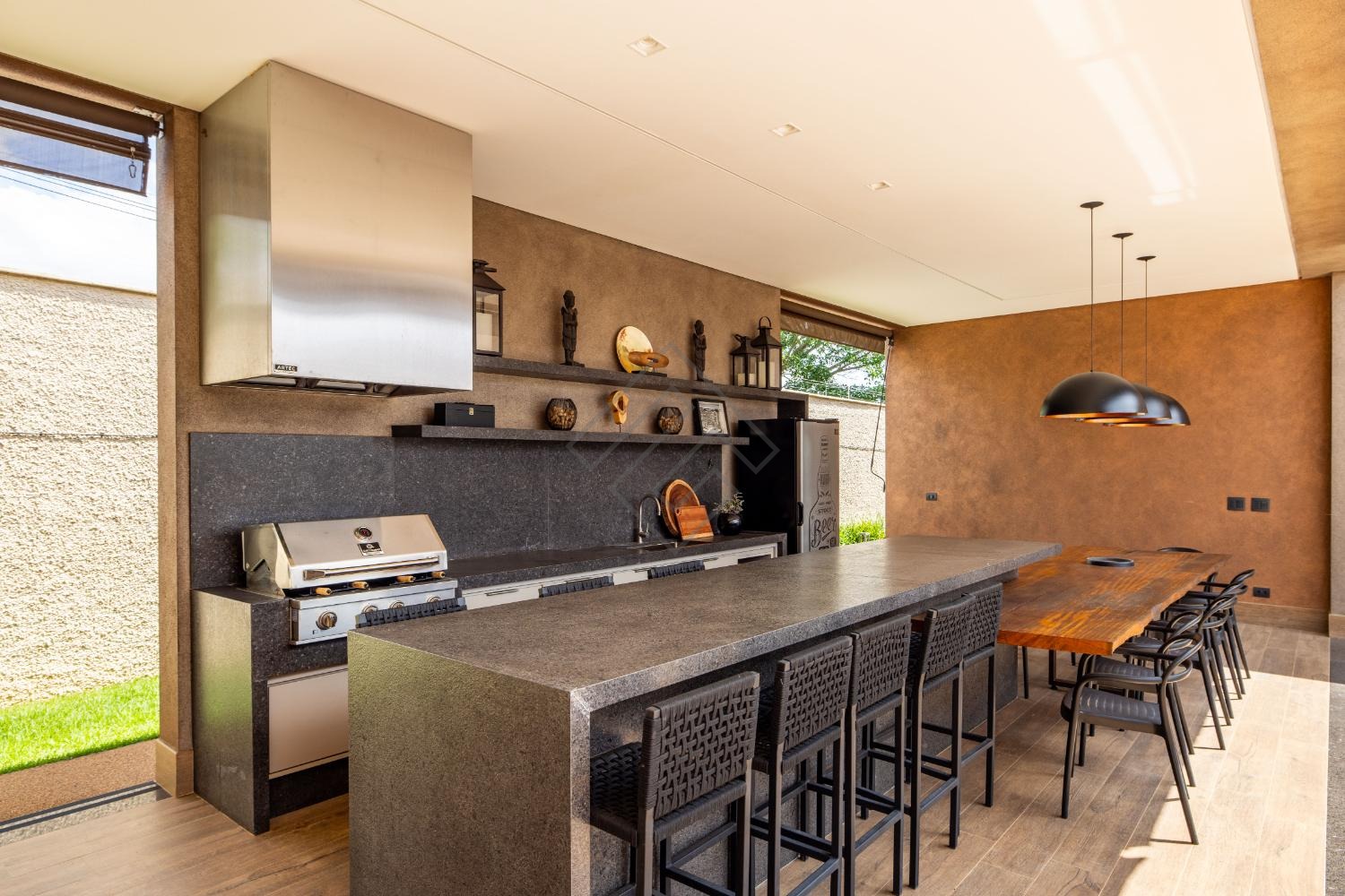 Exclusiva residência térrea, isolada implantada em um amplo terreno de 1.012,49 m², com 455 m² de área construída. O projeto privilegia sofisticação, conforto e integração dos ambientes, oferecendo 5 suítes, 3 salas amplas, 7 banheiros e 6 vagas de garagem.
