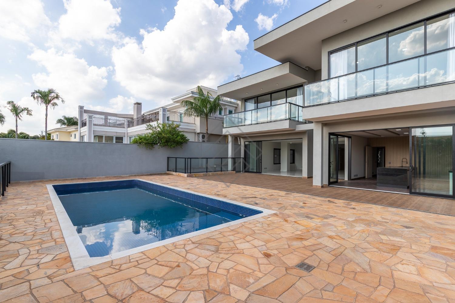 - Área gourmet, integrada com a cozinha com mais uma ilha e um conjunto de forno e micro-ondas, piscina ampla, com quintal paisagismo para momentos memoráveis;