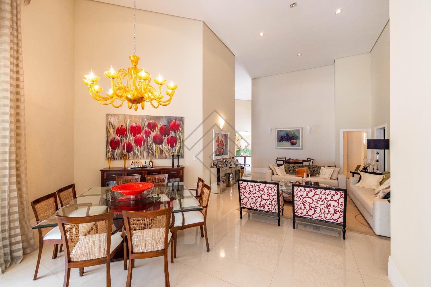 - Sala com pé direito de 6 metros para 3 ambientes, com muita iluminação natural e amplas janelas;