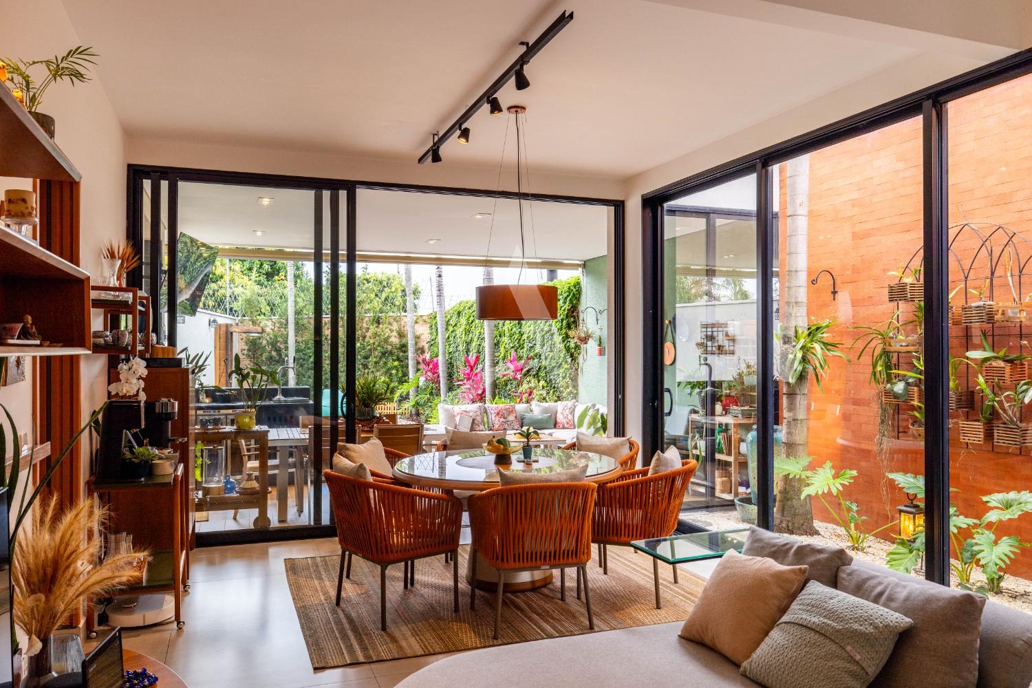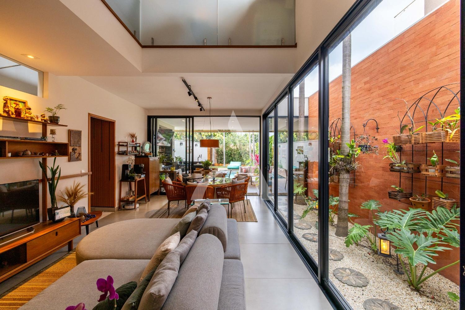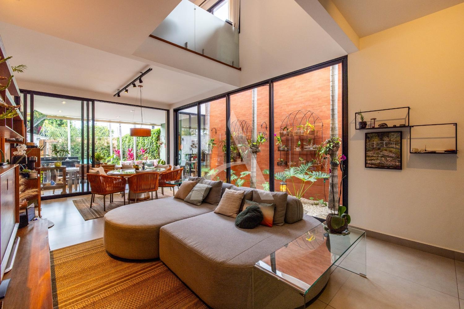 - Sala ampla para 3 ambientes, com muita iluminação natural e janelões largos com um orquidário conectando todo o ambiente;