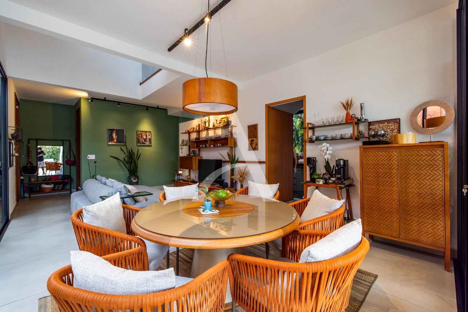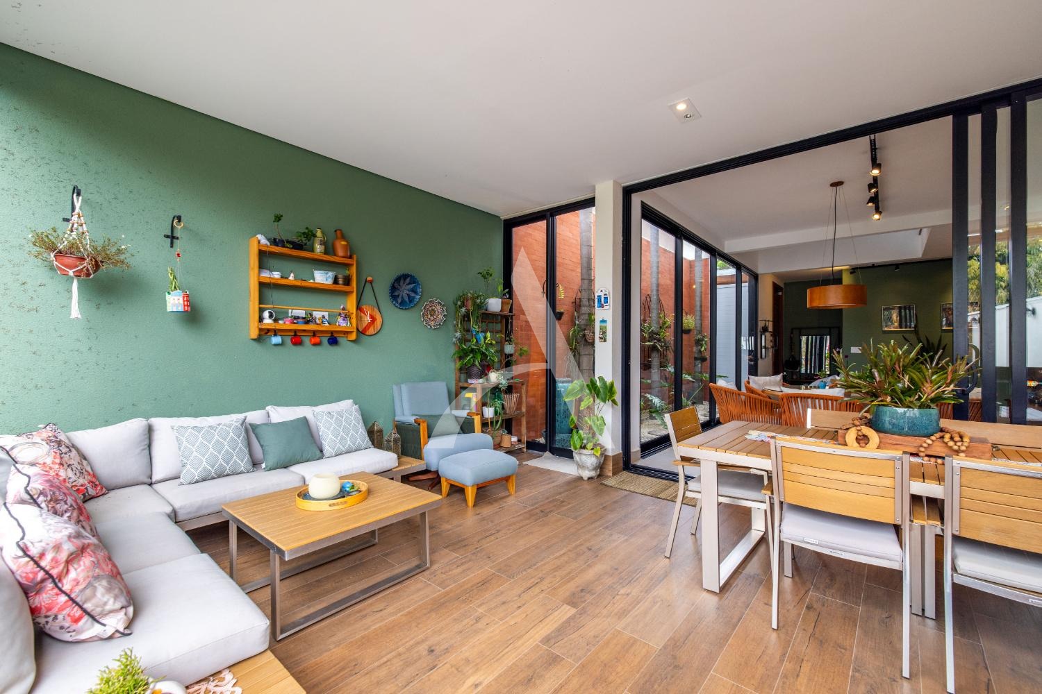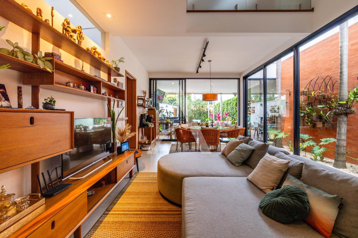 - Sala ampla para 3 ambientes, com muita iluminação natural e janelões largos com um orquidário conectando todo o ambiente;