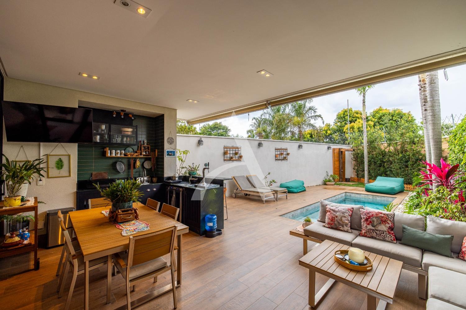 - Espaço gourmet sofisticado com churrasqueira a carvão, piscina aquecida e paisagismo nobre;