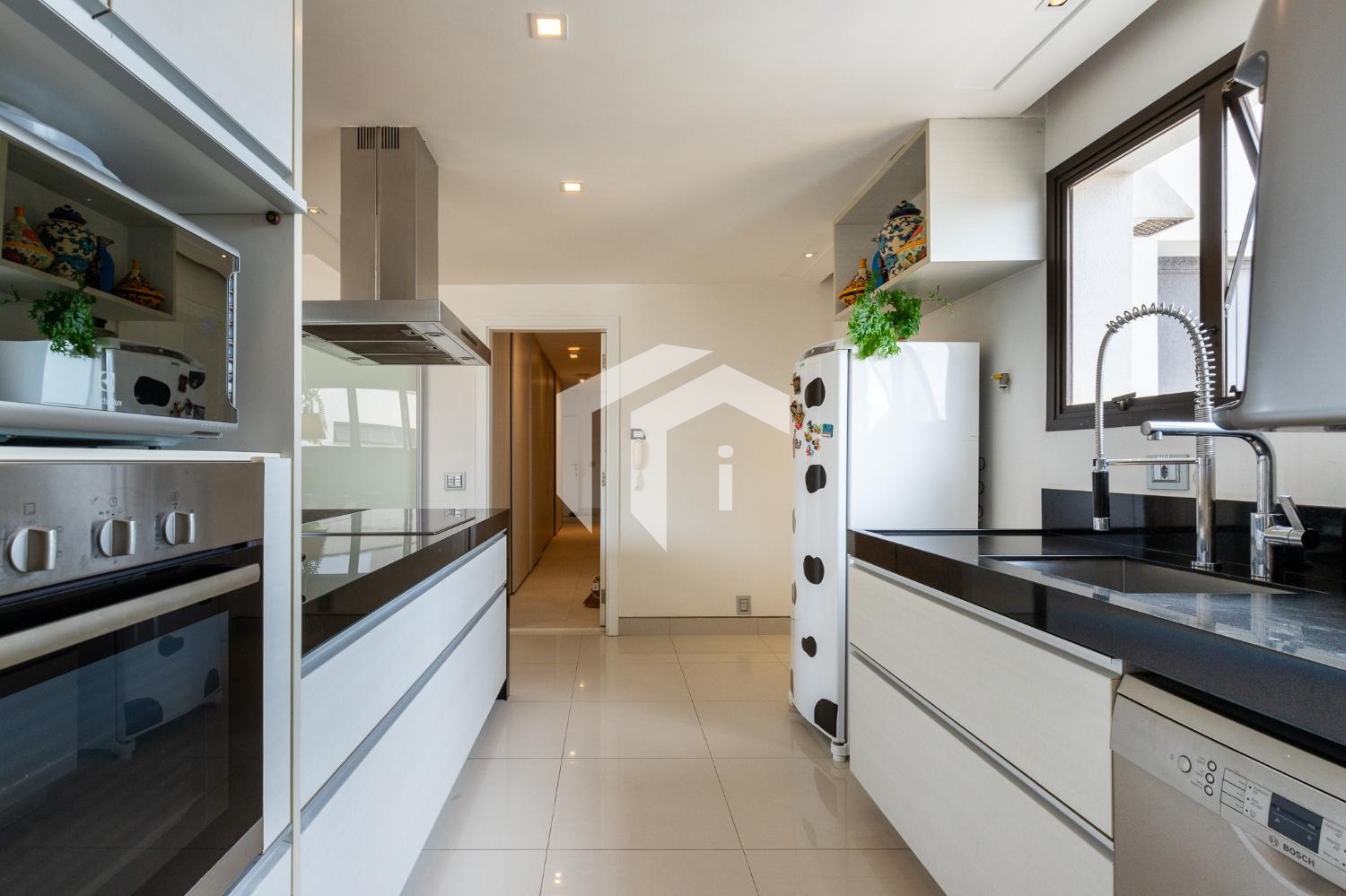 No piso inferior; living para 3 ambientes com varanda e lavabo, copa/cozinha com despensa, área de serviço, mais, dependência completa de empregada.