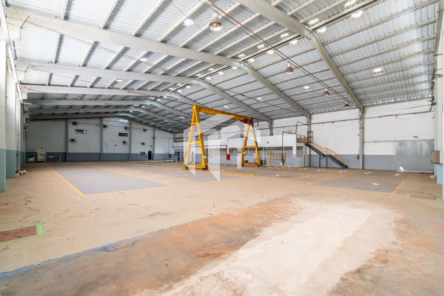 Pé direito predominante de 8 metros, capacidade pisco de 5ton/m², caixa d´água auxiliar, cabine primária de 300 kva.