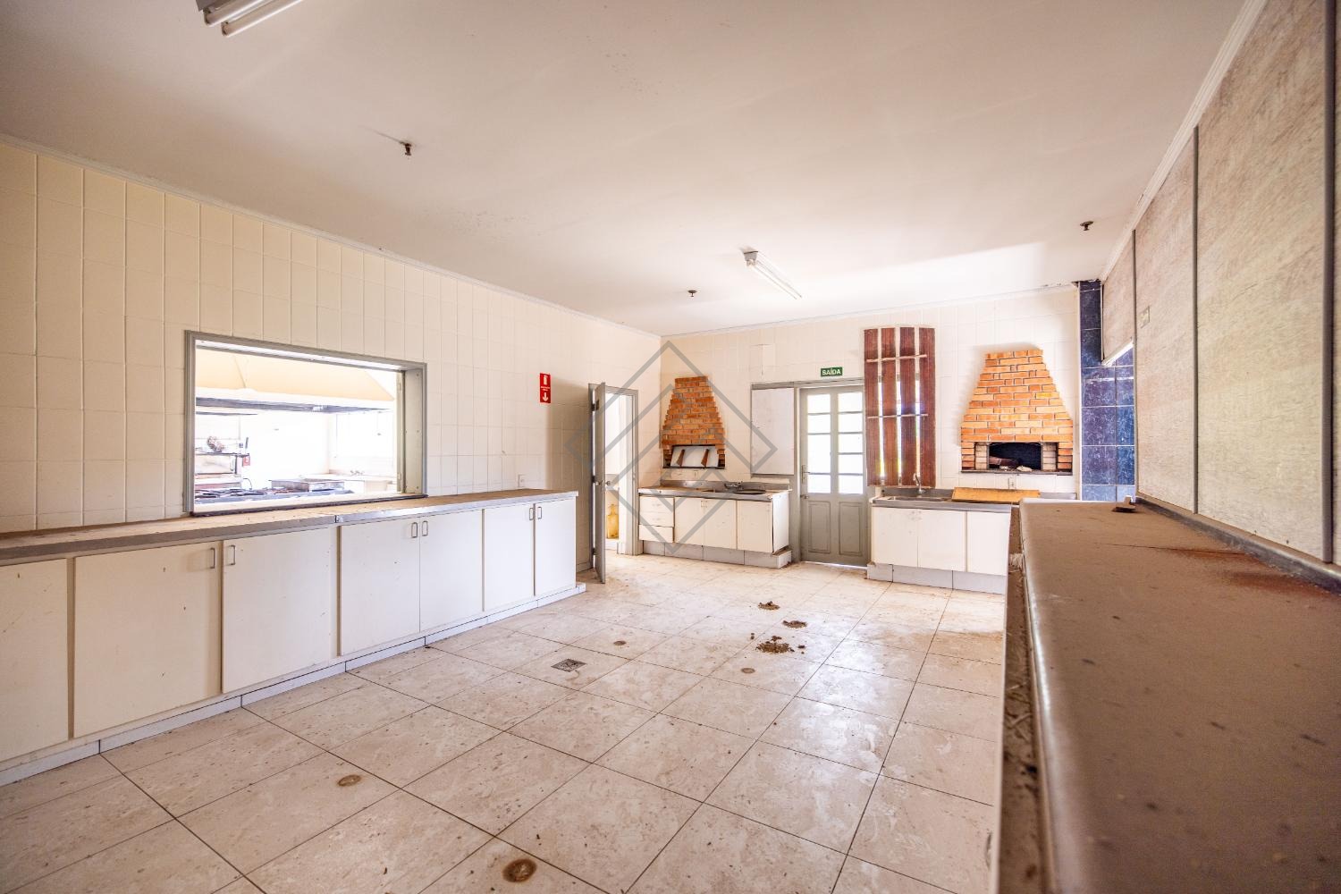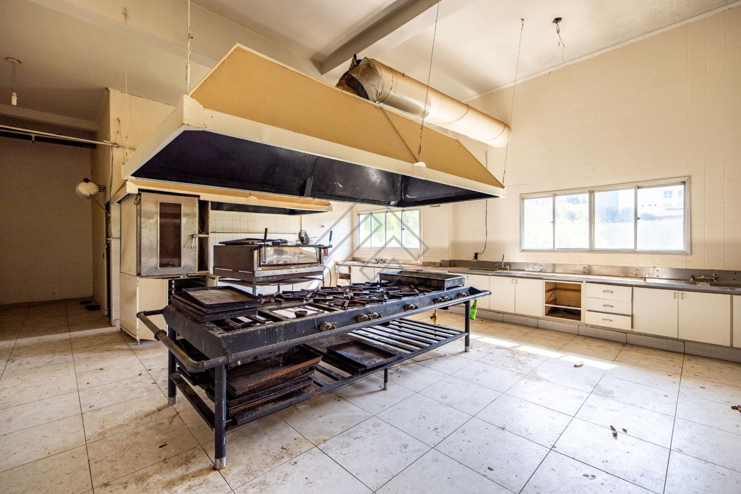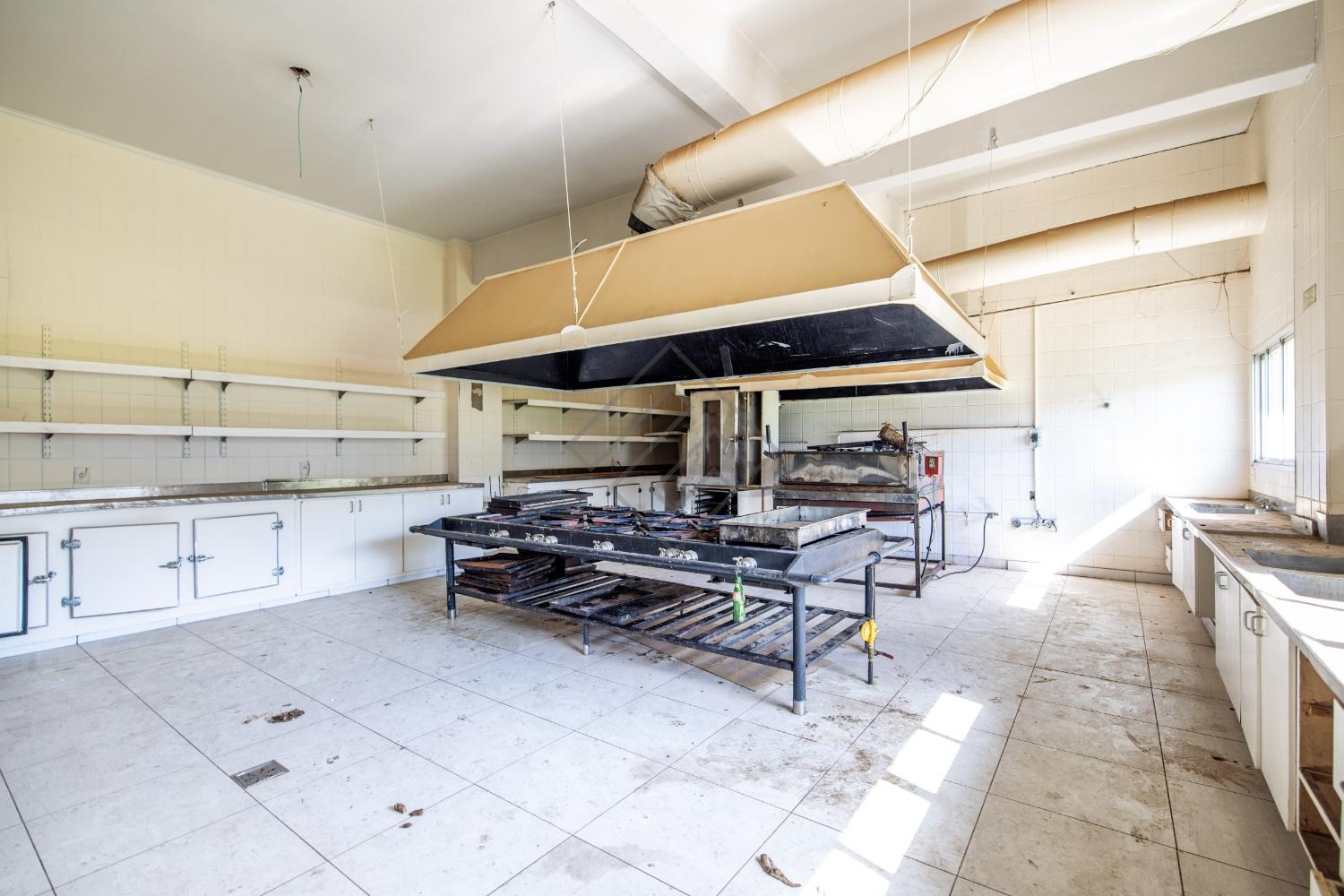 - Cozinha Industrial com fogão industrial, câmara fria ampla e repleta de armários;