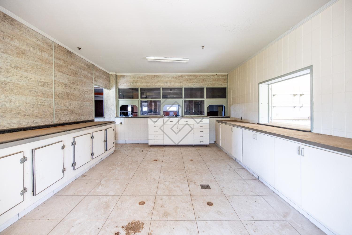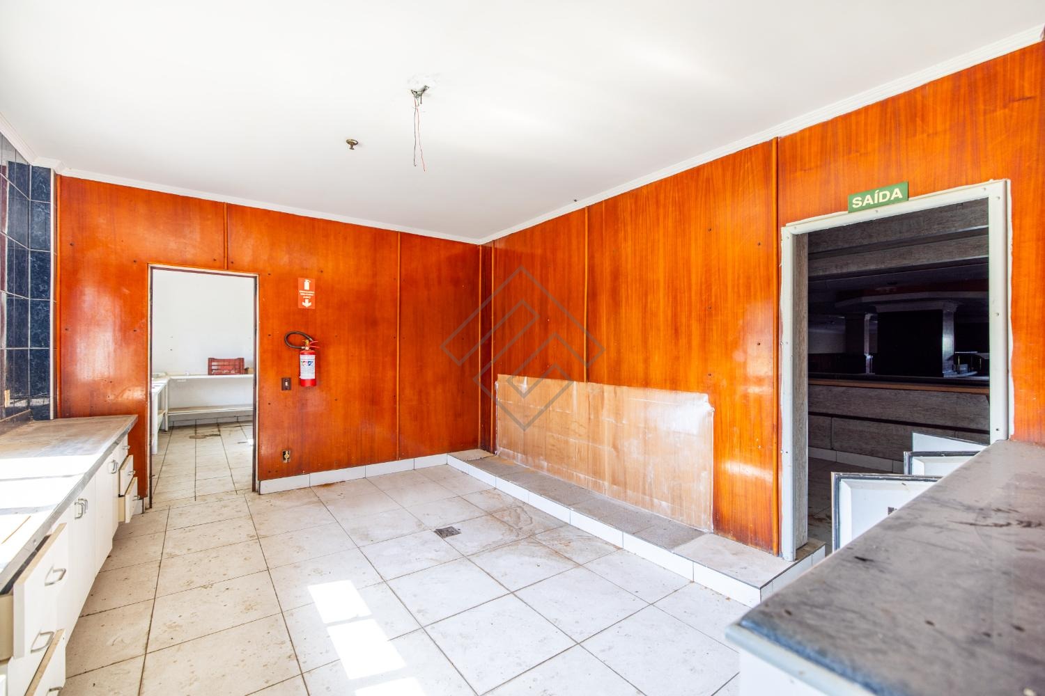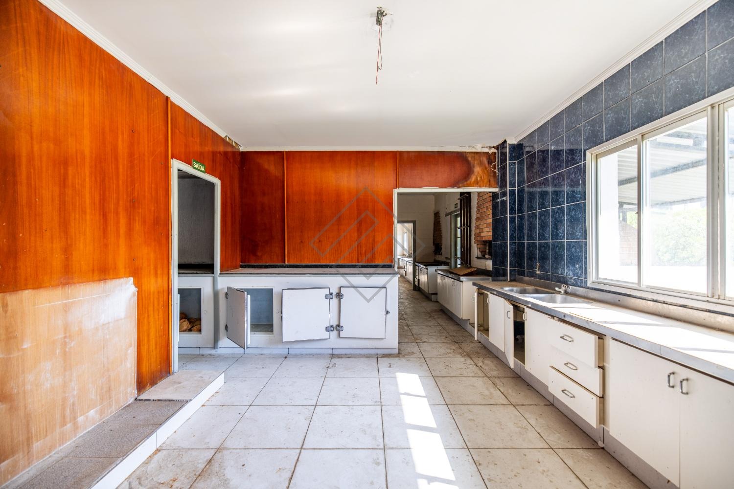 - Cozinha Industrial com fogão industrial, câmara fria ampla e repleta de armários;